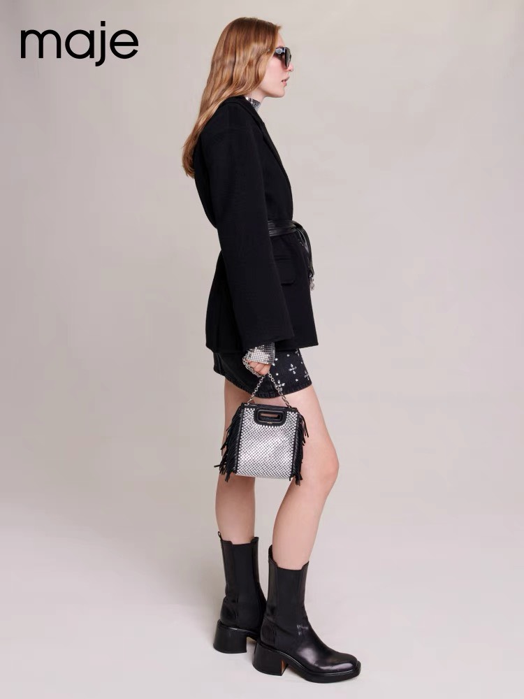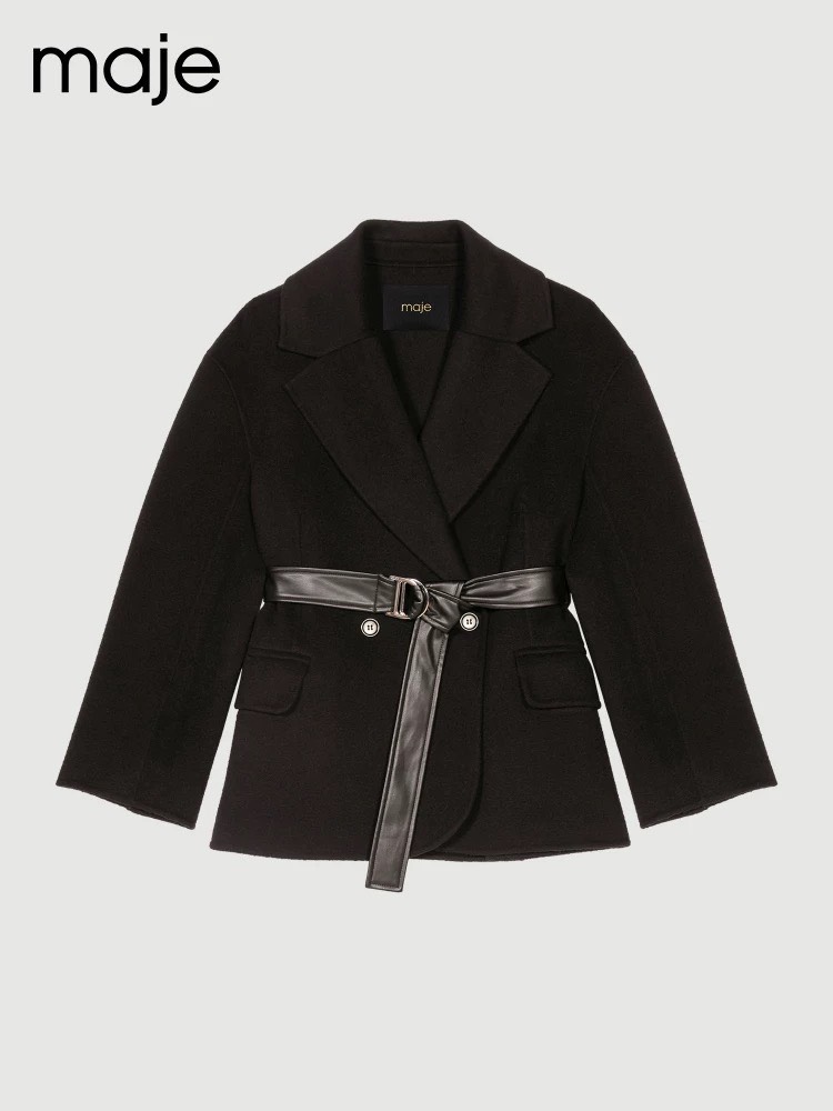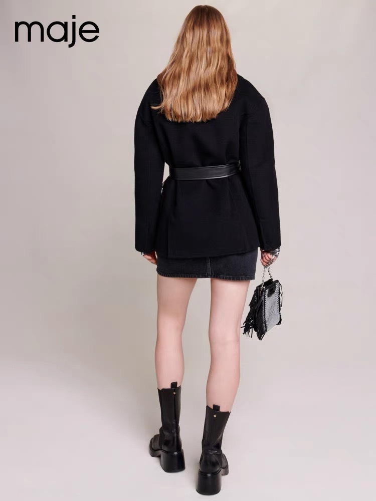 Áo khoác SANDRO nâu cổ lông siêu nhẹ