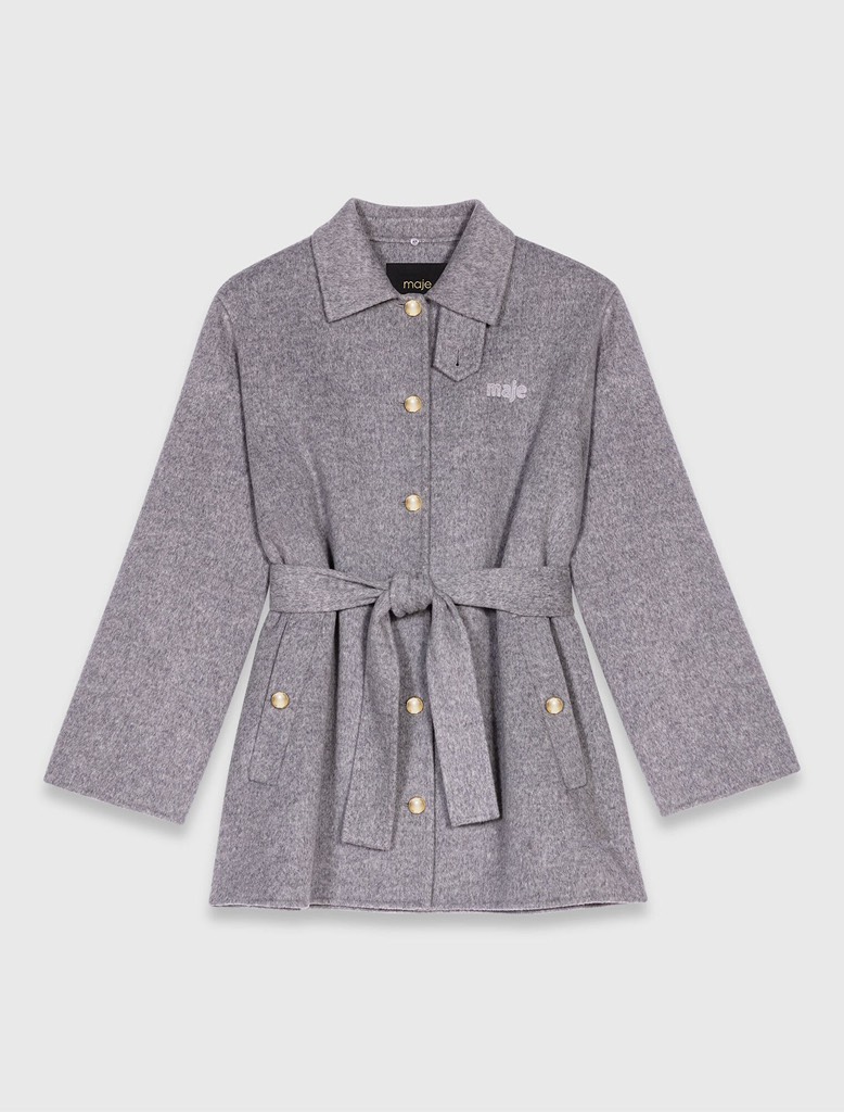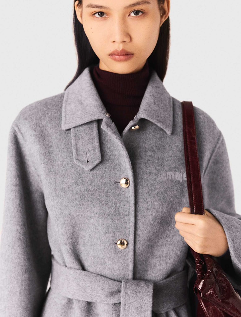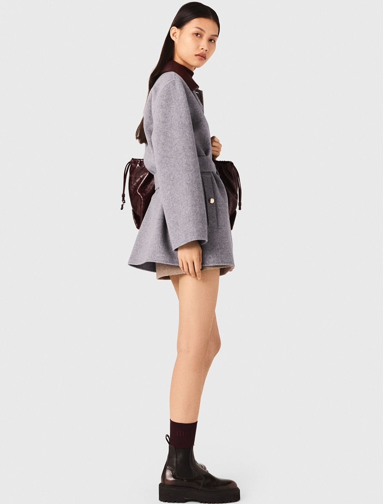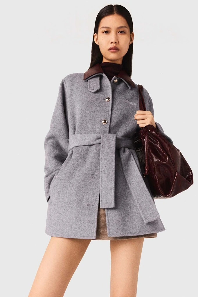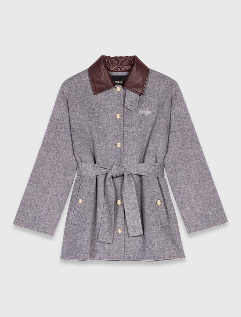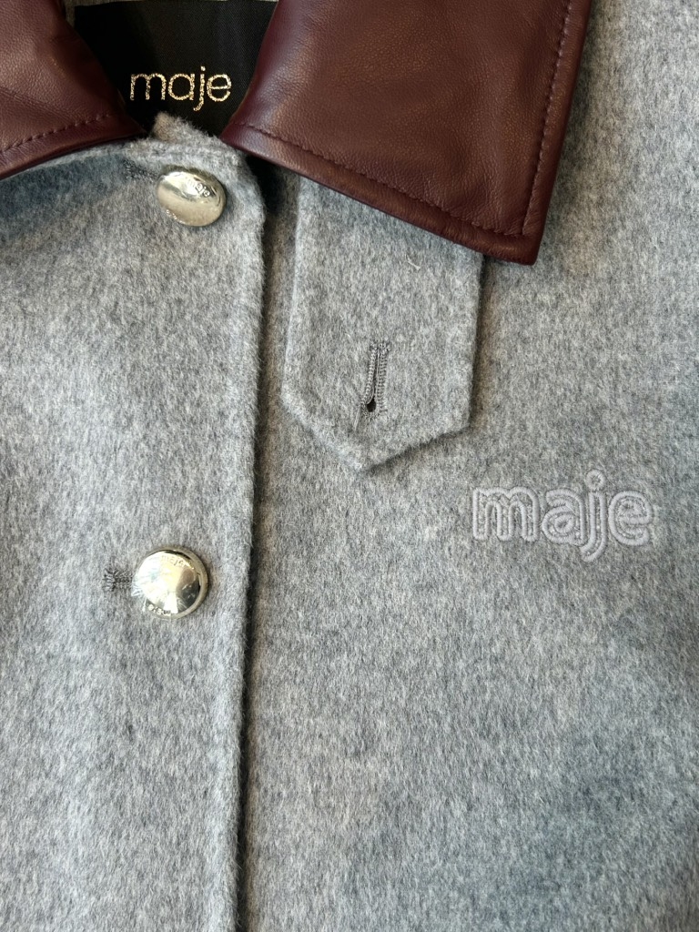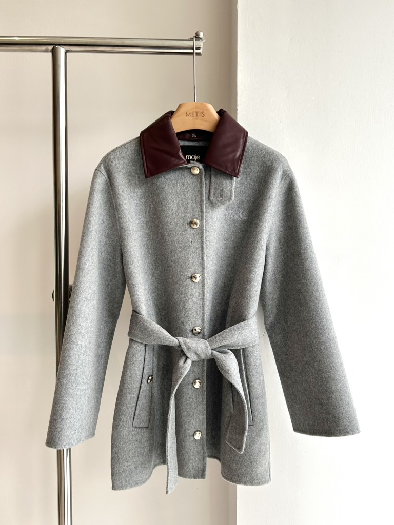 Áo dạ MAJE ghi cổ da