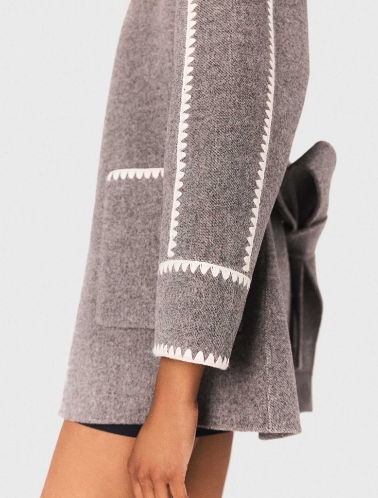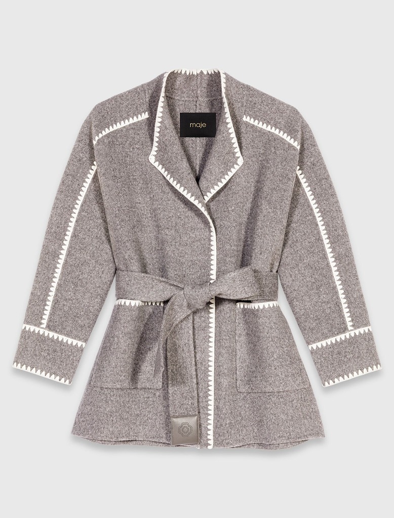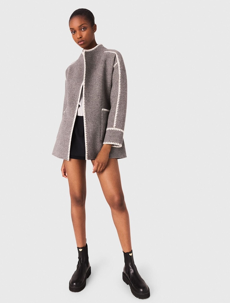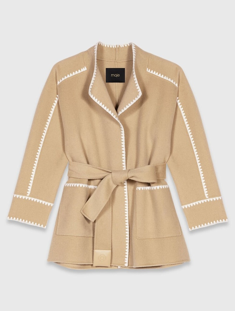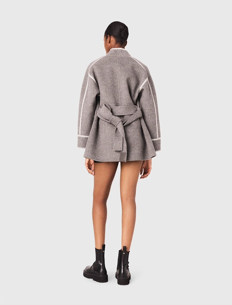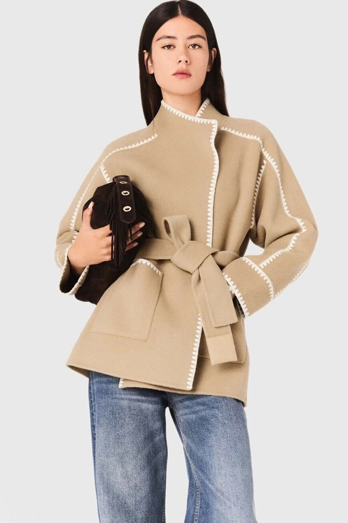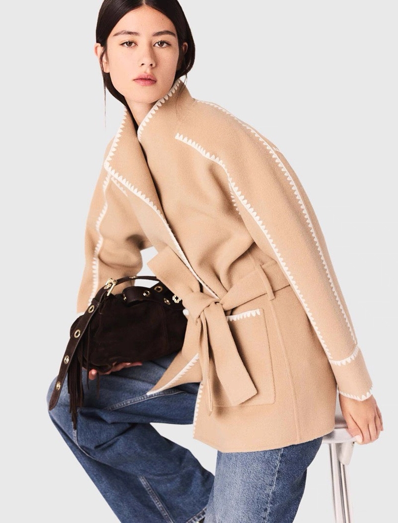Áo khoác SANDRO nâu cổ lông siêu nhẹ