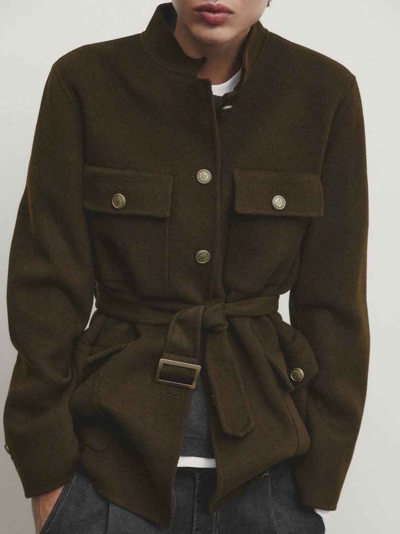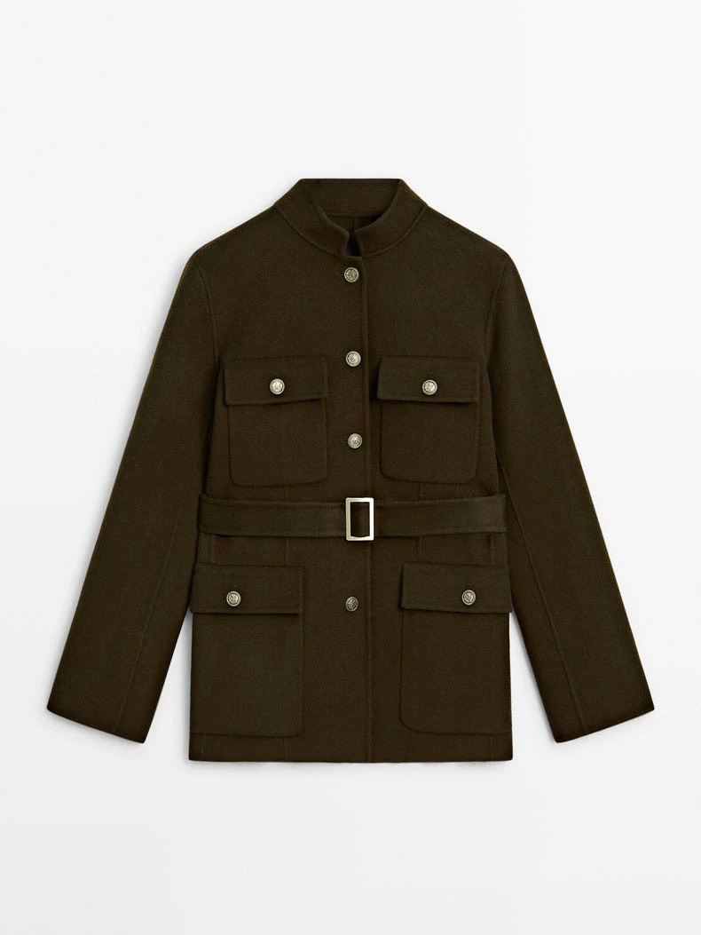 Áo dạ MASSIMO DUTTI rêu kèm belt