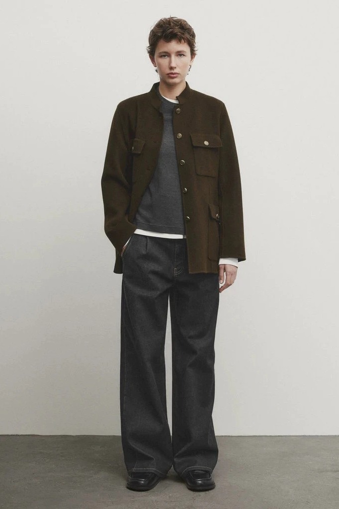 Áo dạ MASSIMO DUTTI nâu kem cổ đứng