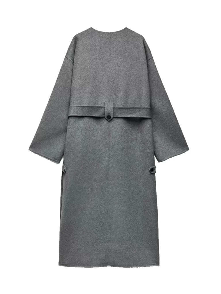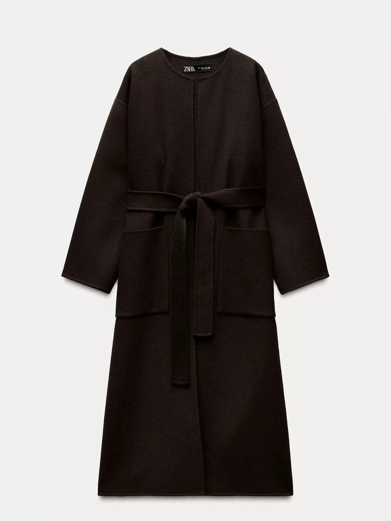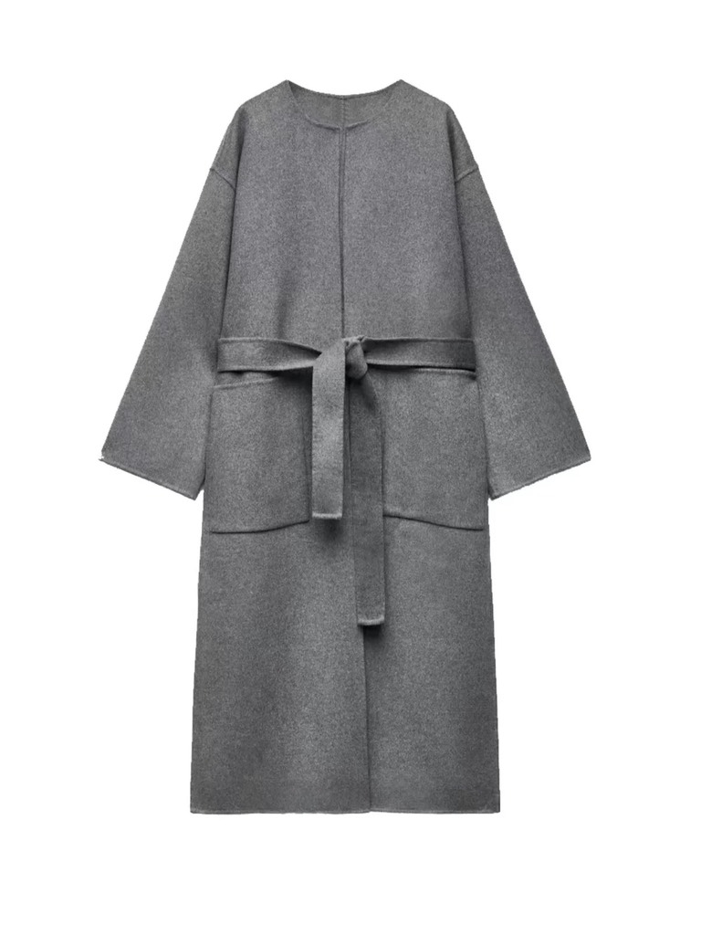 Áo dạ ZARA cổ tròn kèm belt túi 2 bên