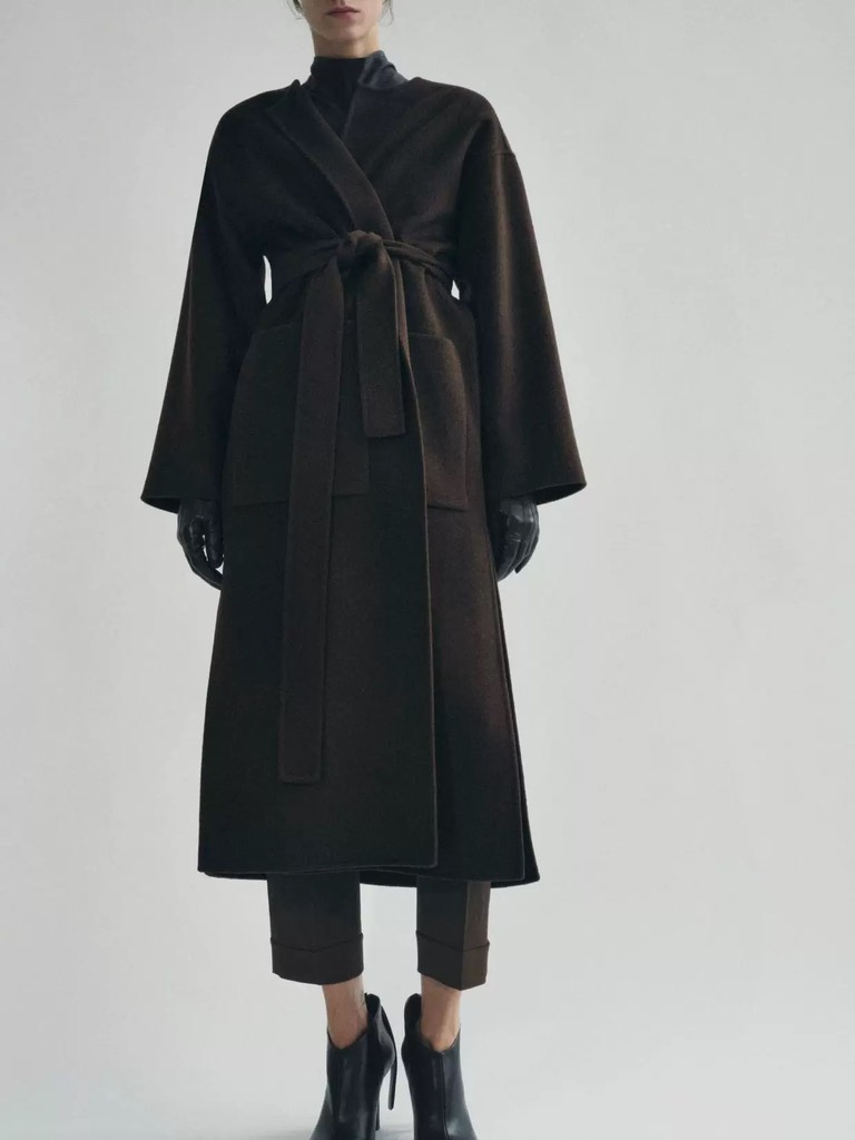 Áo dạ MASSIMO DUTTI đai tay, dài