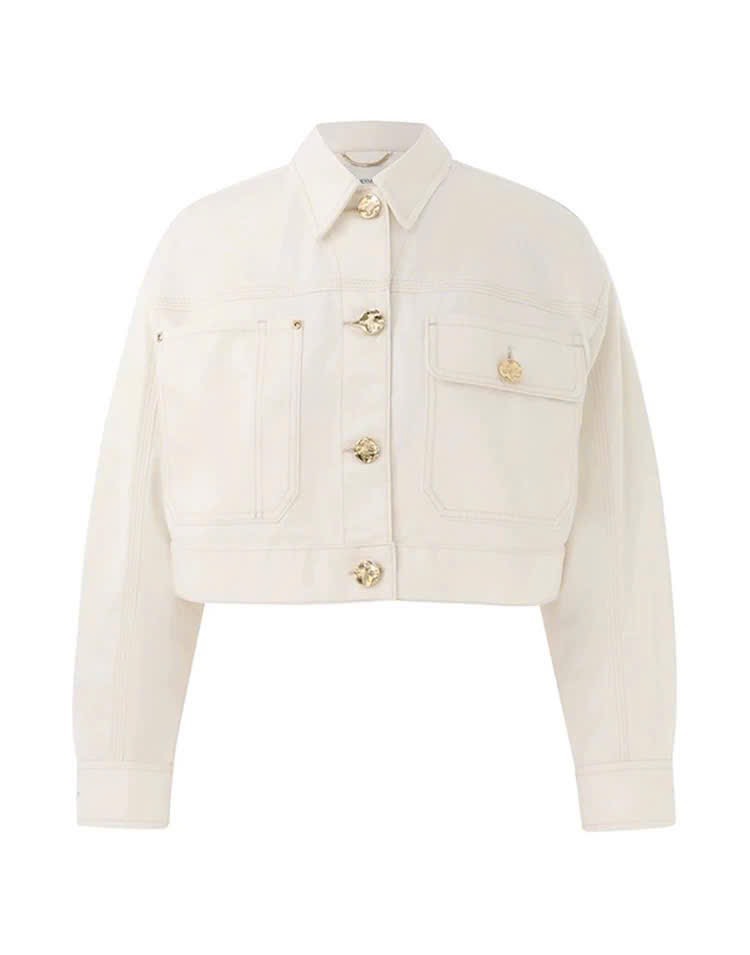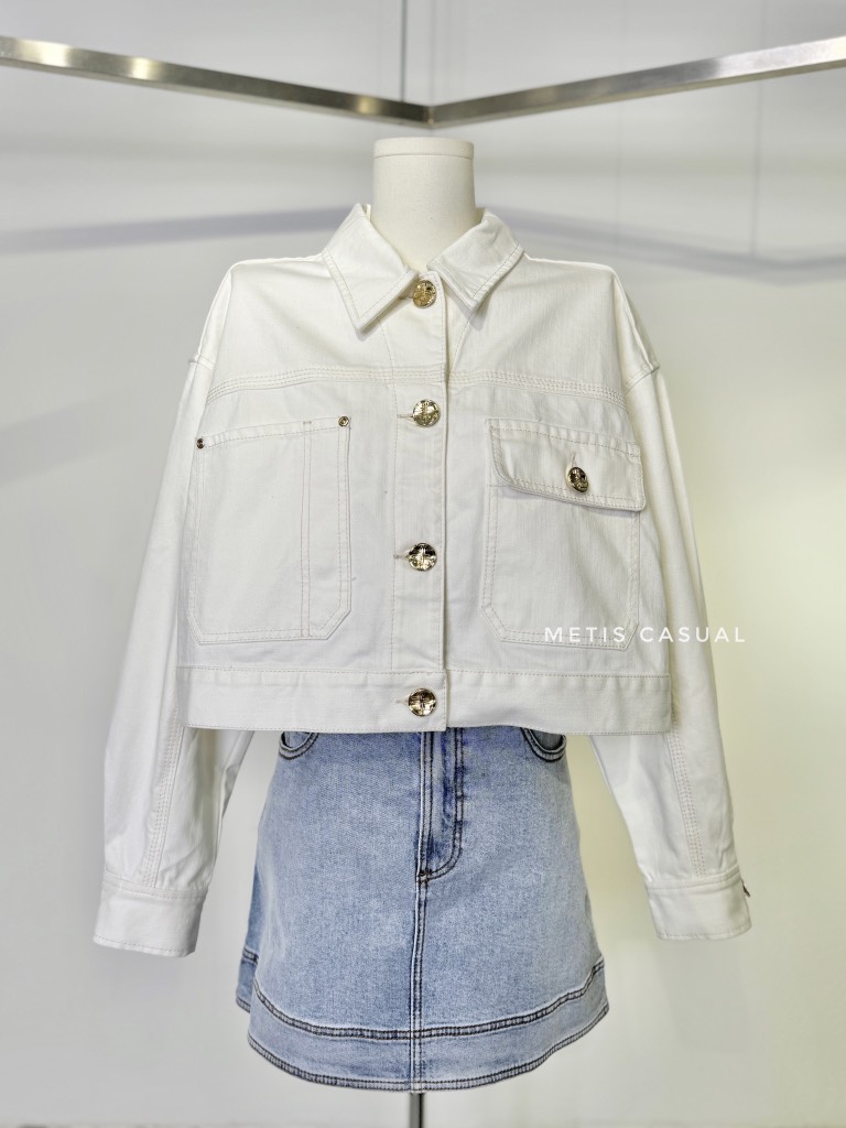 Áo SANDRO nâu cổ cải da túi 2 bên