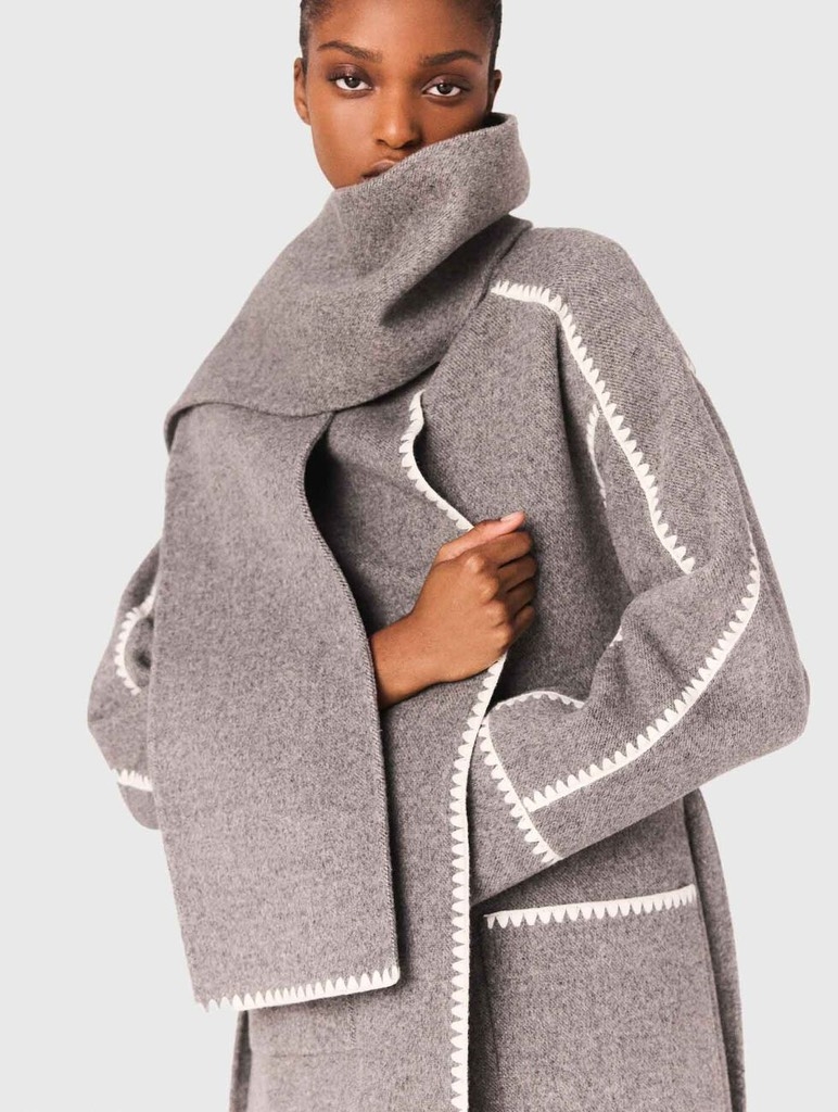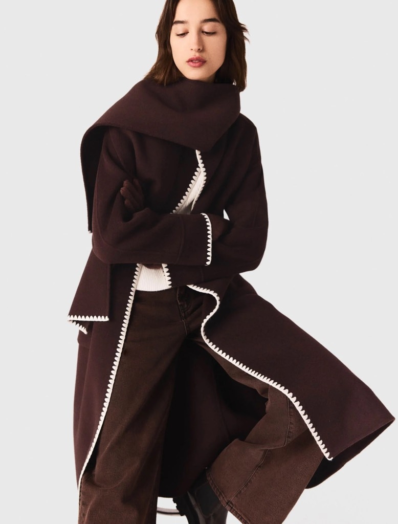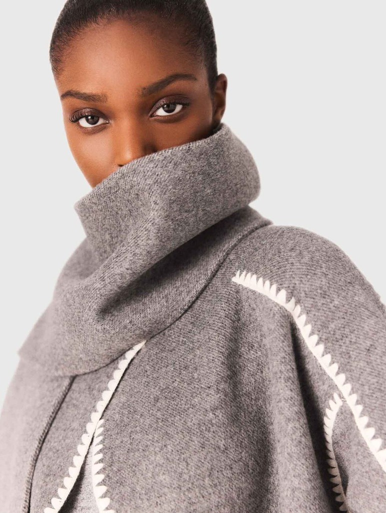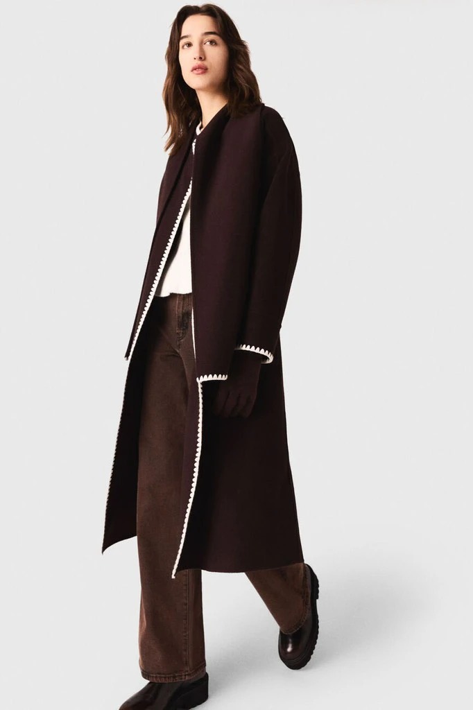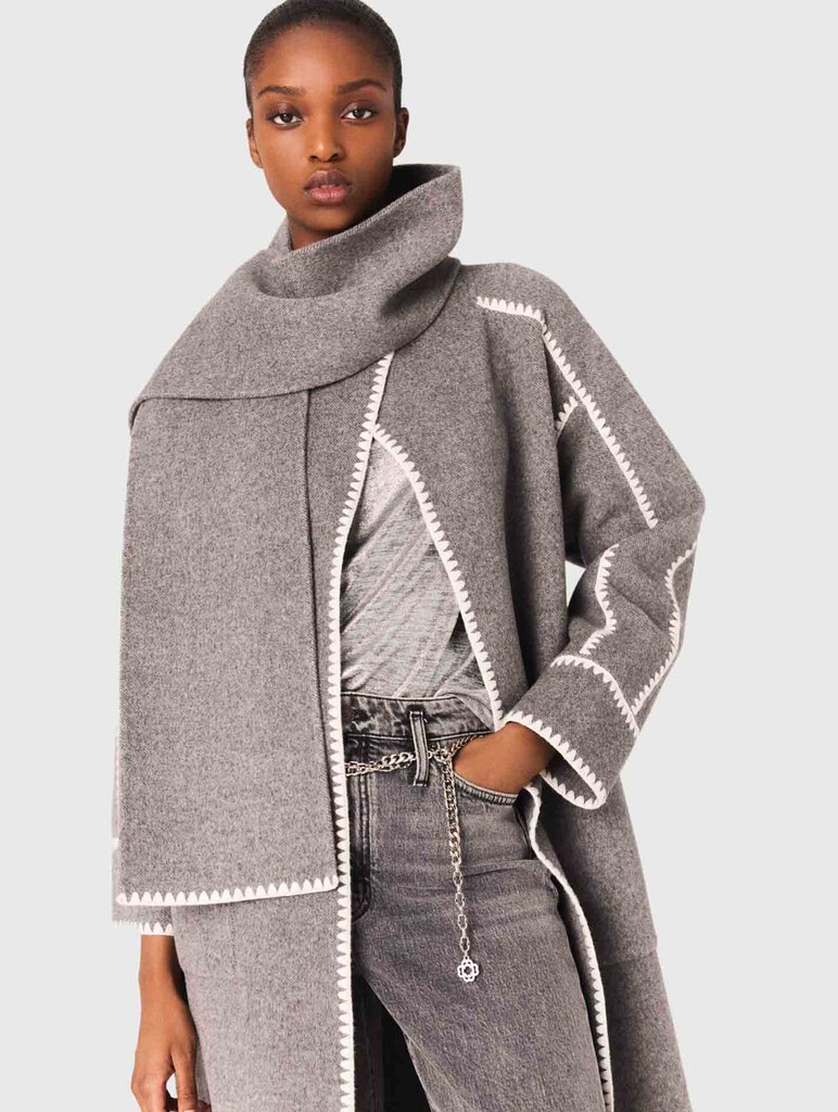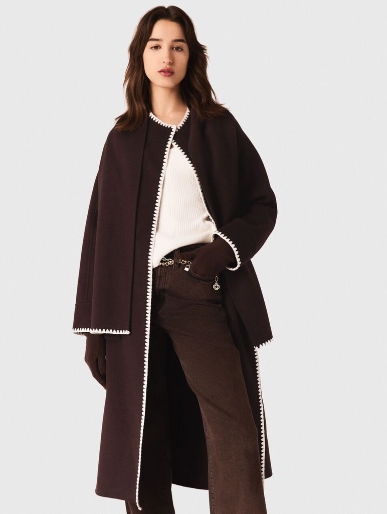 Áo khoác dạ MAJE dáng dài viền áo