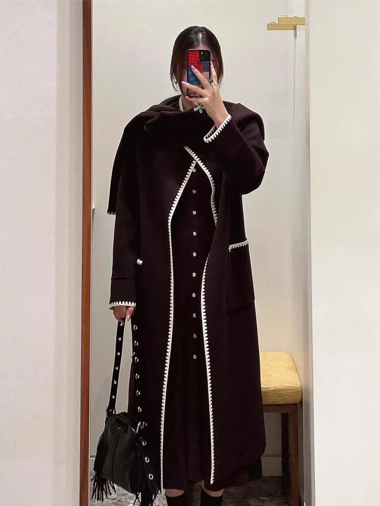 Áo dạ ZARA nâu dáng dài túi 2 bên