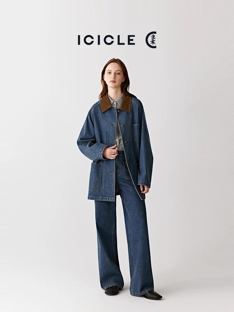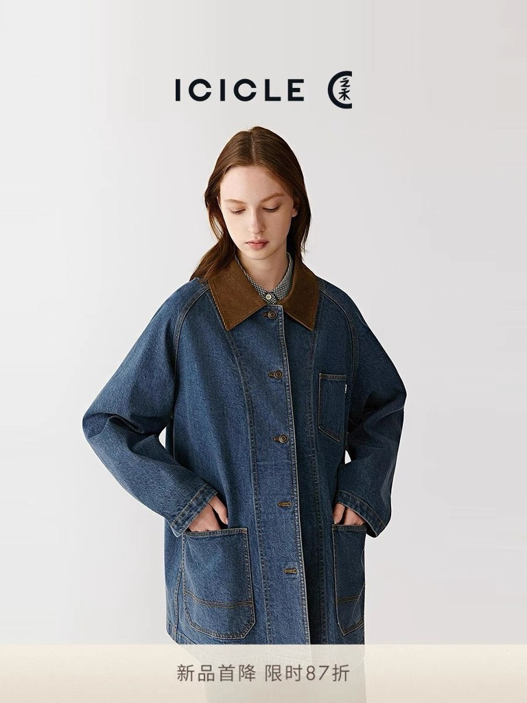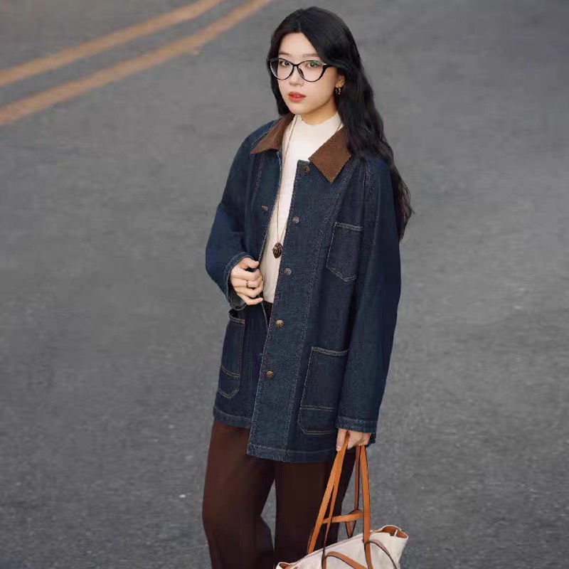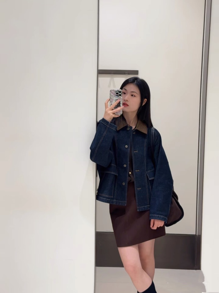 Áo SANDRO nâu cổ cải da túi 2 bên
