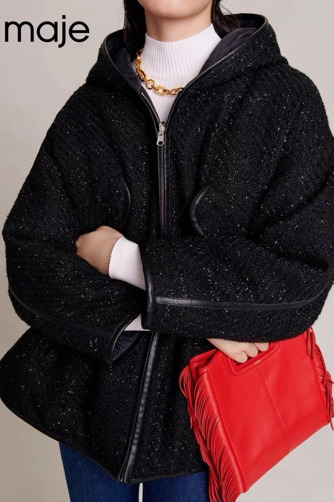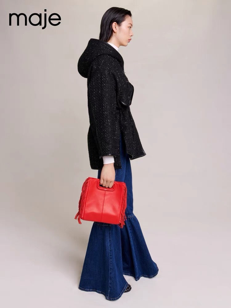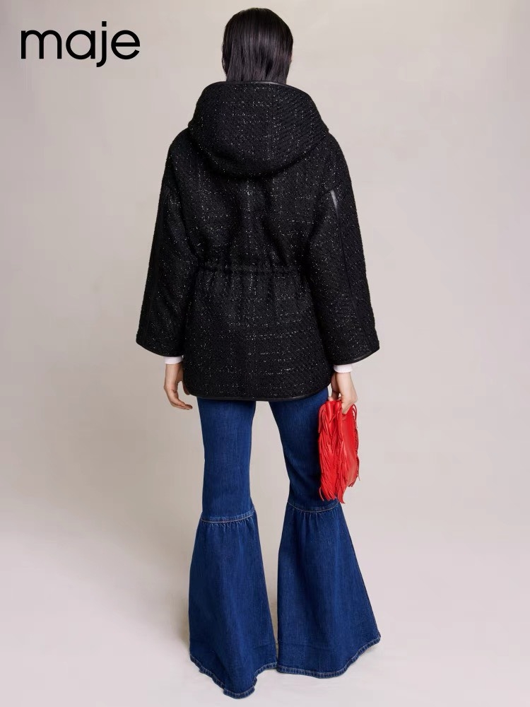 Áo khoác MAJE đen cổ lông