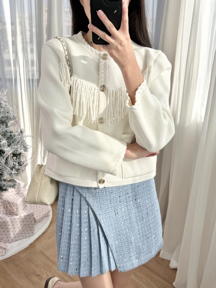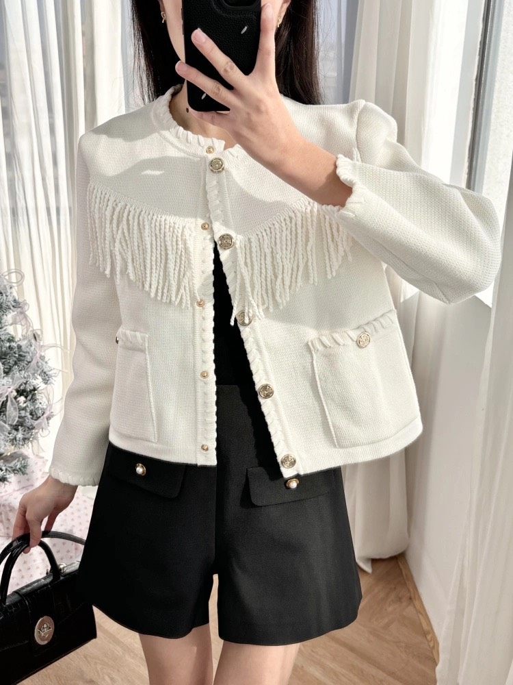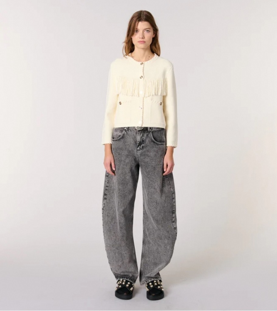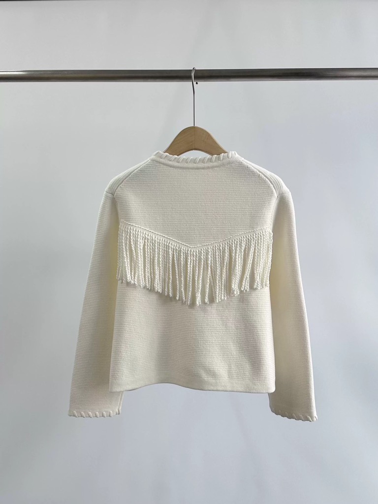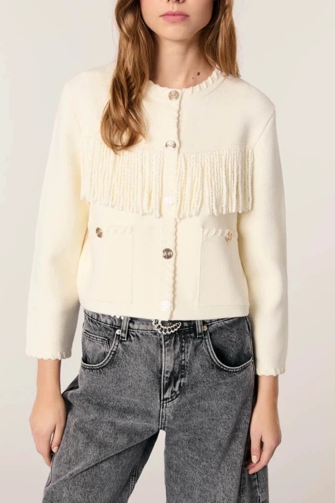Áo khoác MAJE kem tua rua ngực