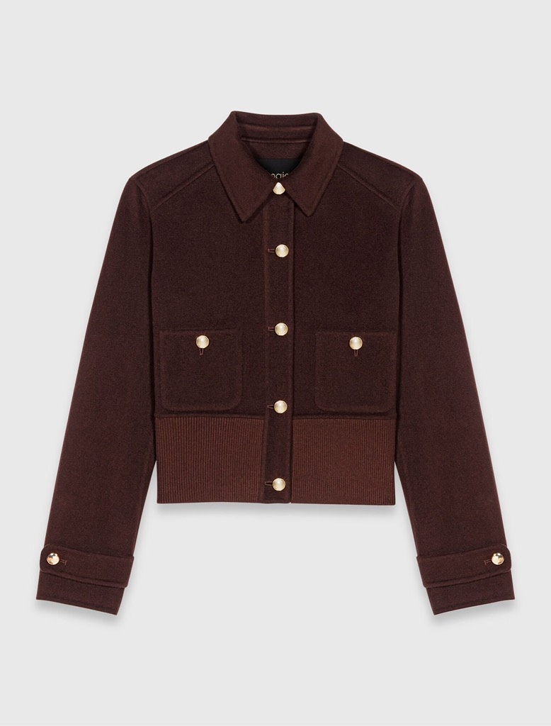 Áo khoác MAJE nâu chun gấu cổ bẻ