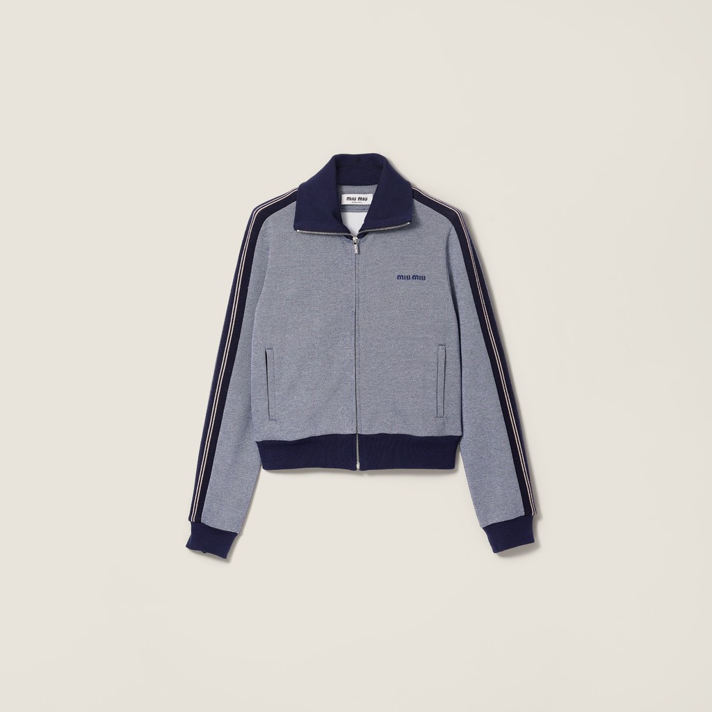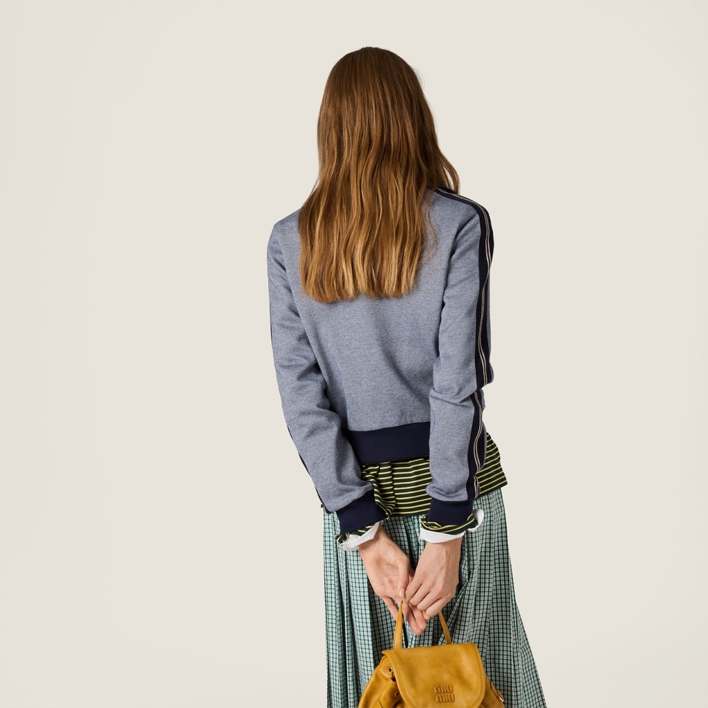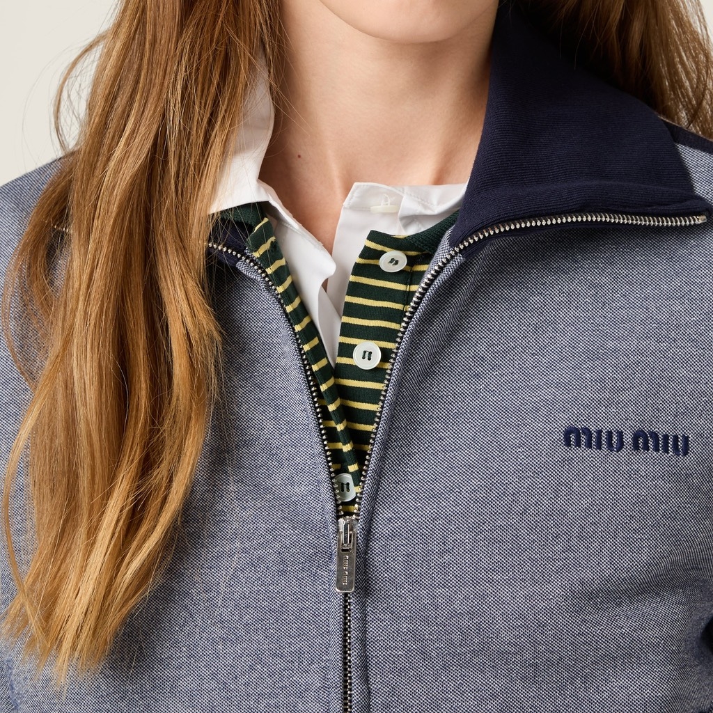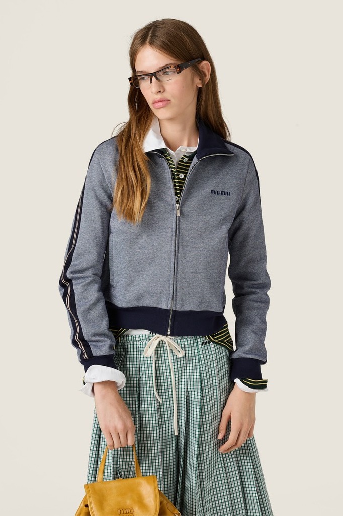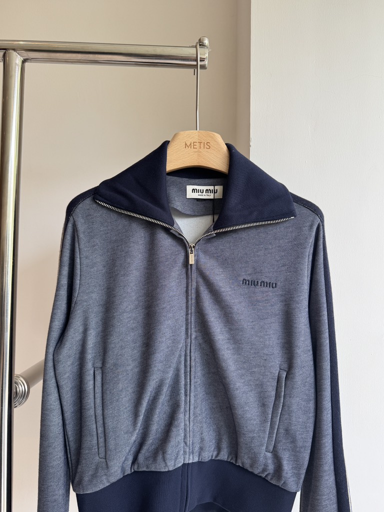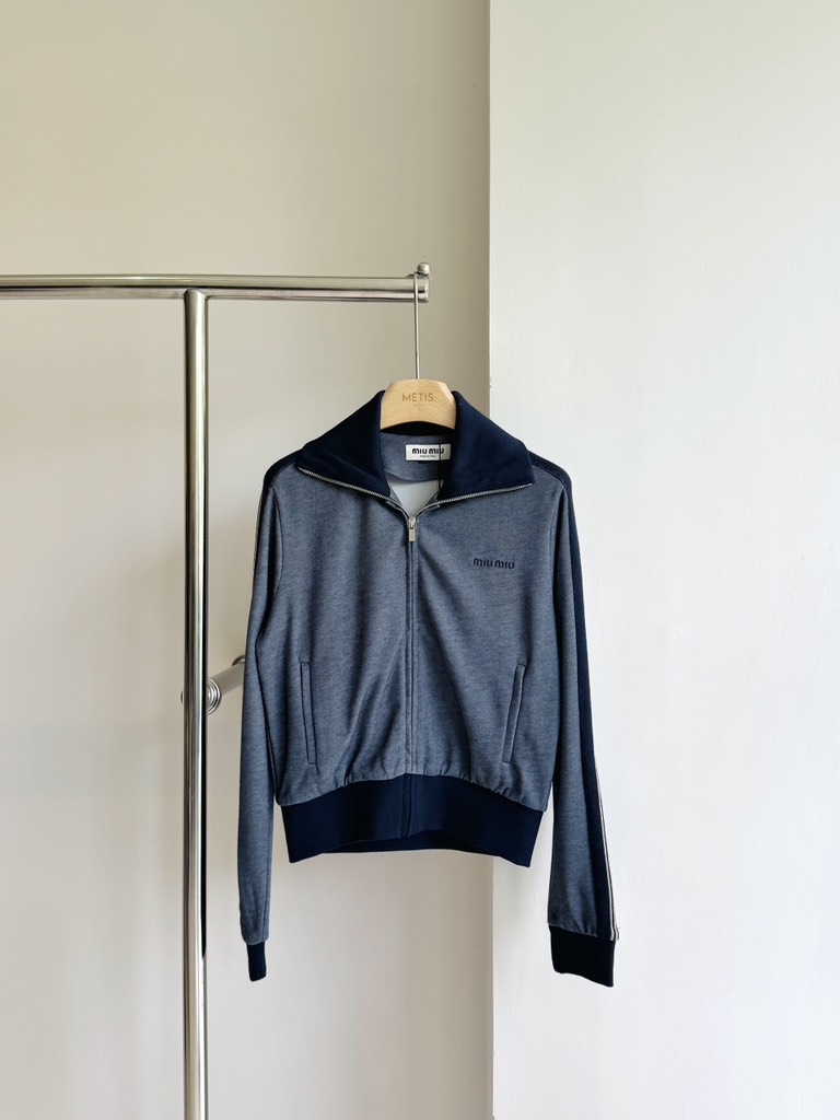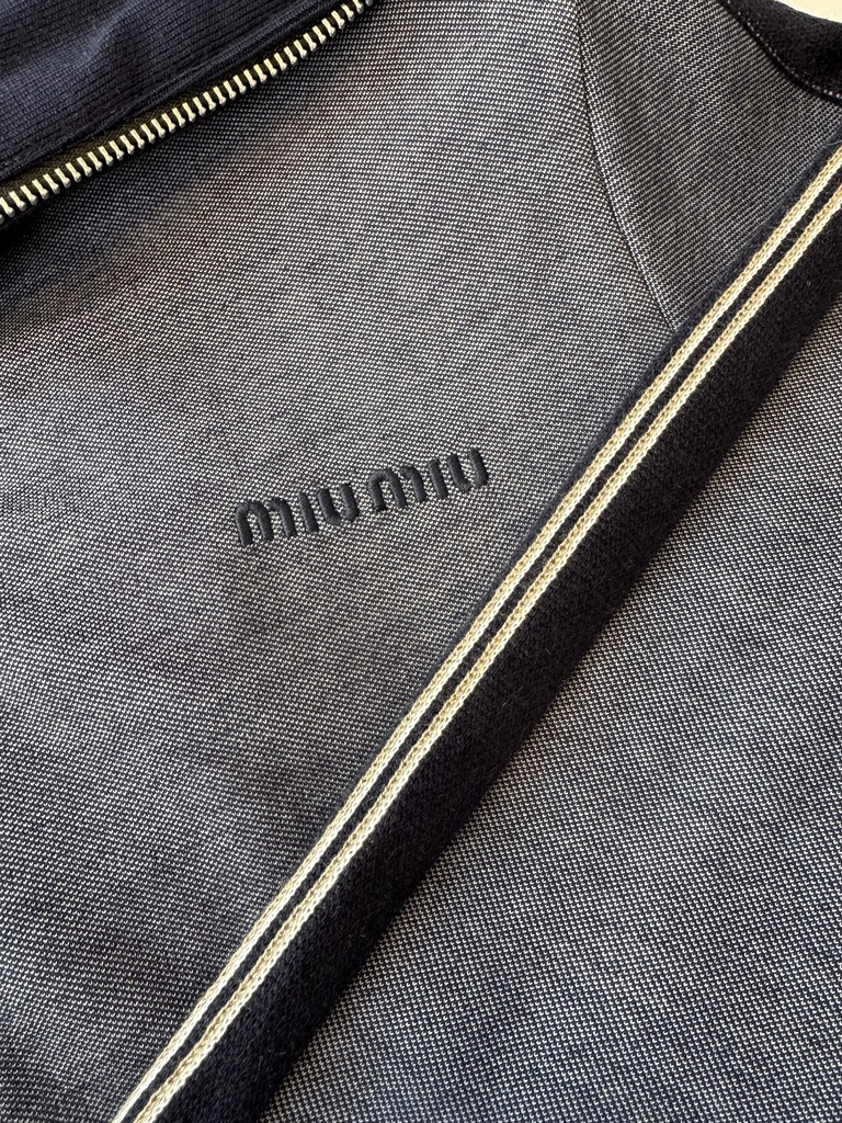 Áo khoác MIUMIU ghi viền tay nâu chun gấu (có set)