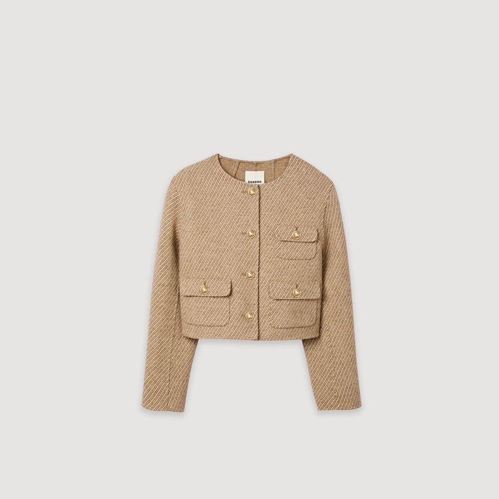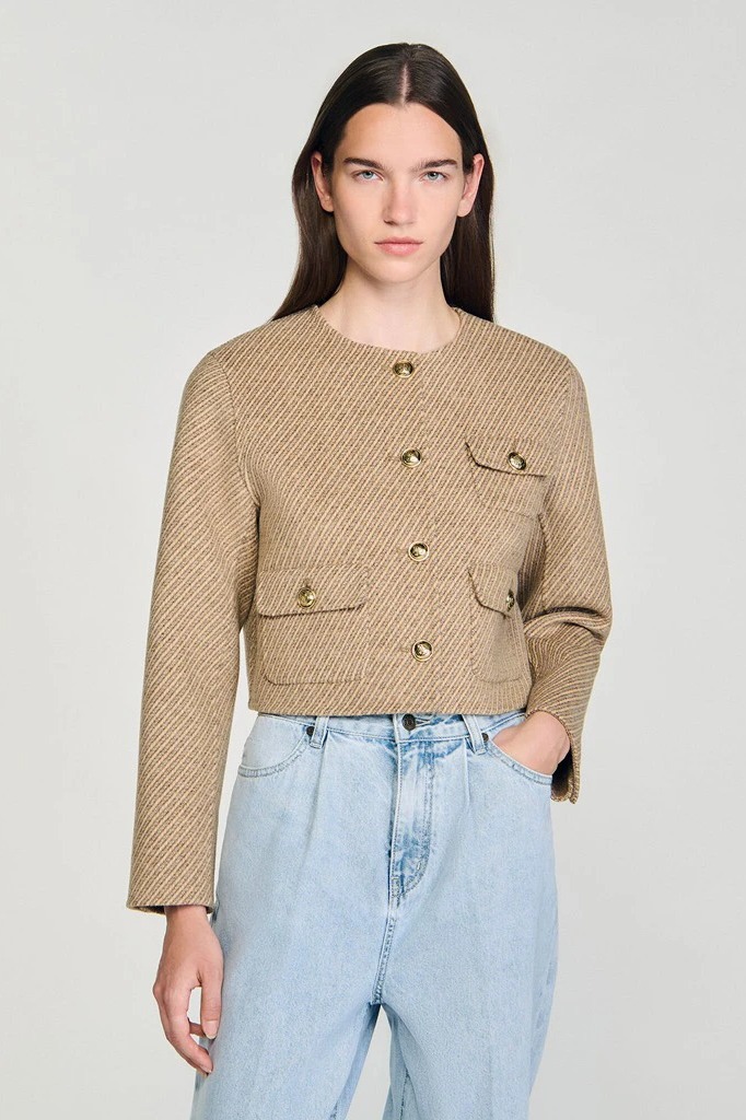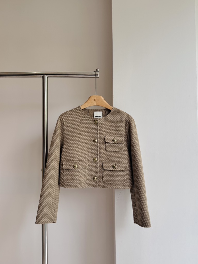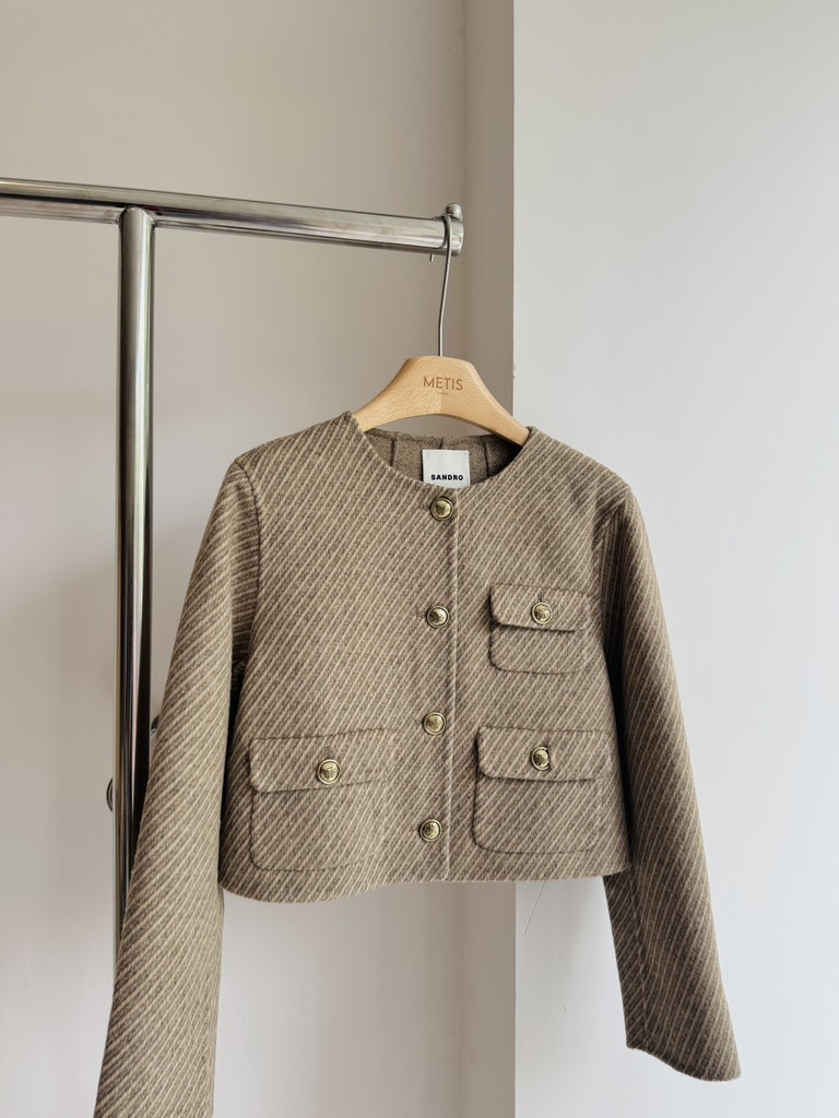 Áo khoác SANDRO dạ nâu kẻ