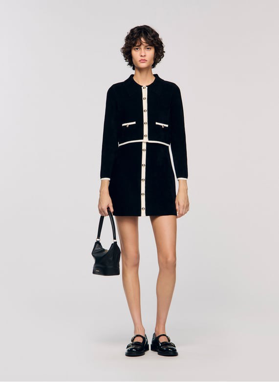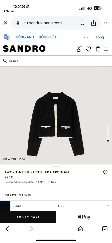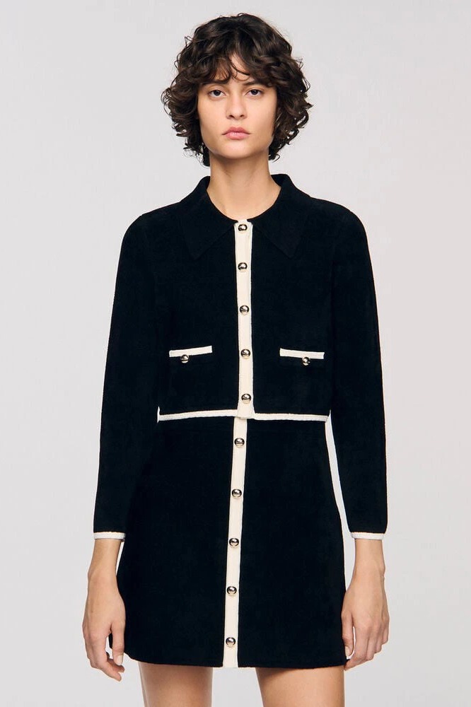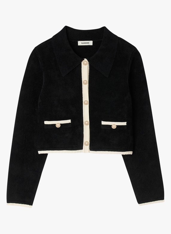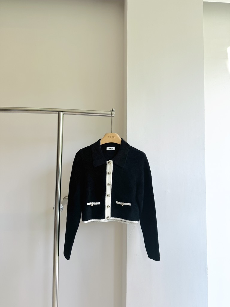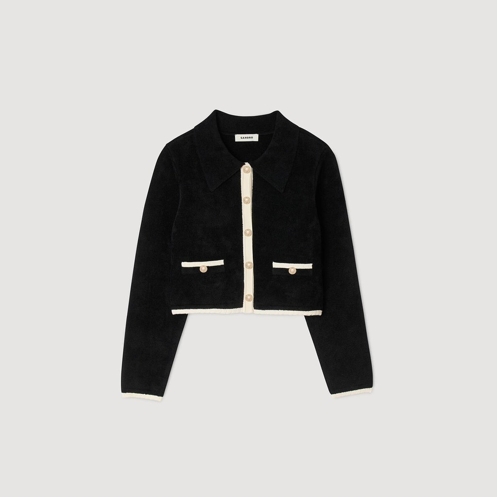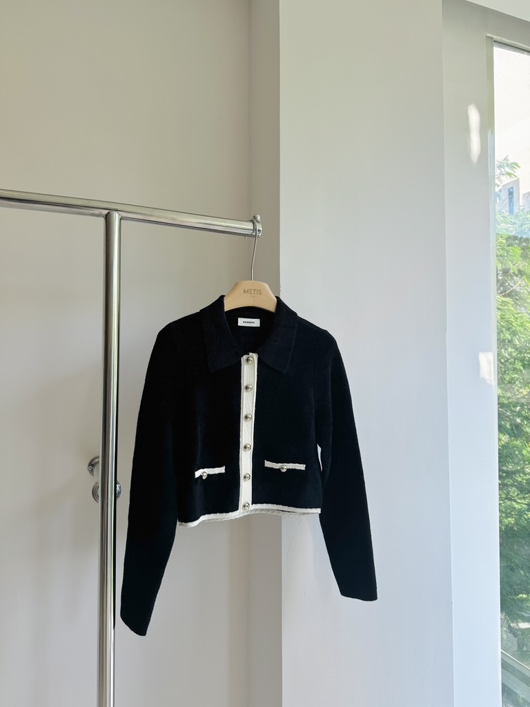 Áo khoác SANDRO đen viền kem