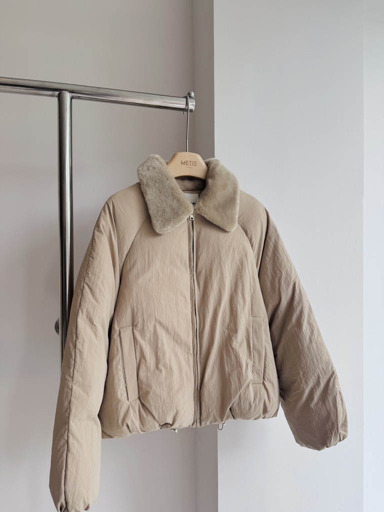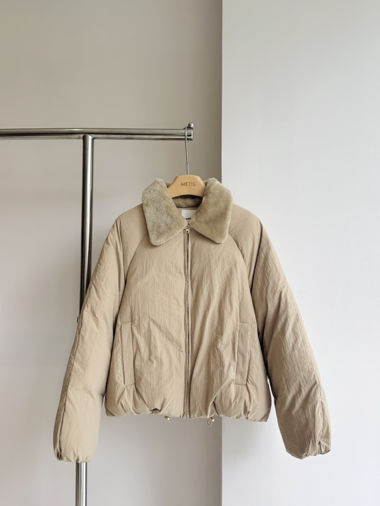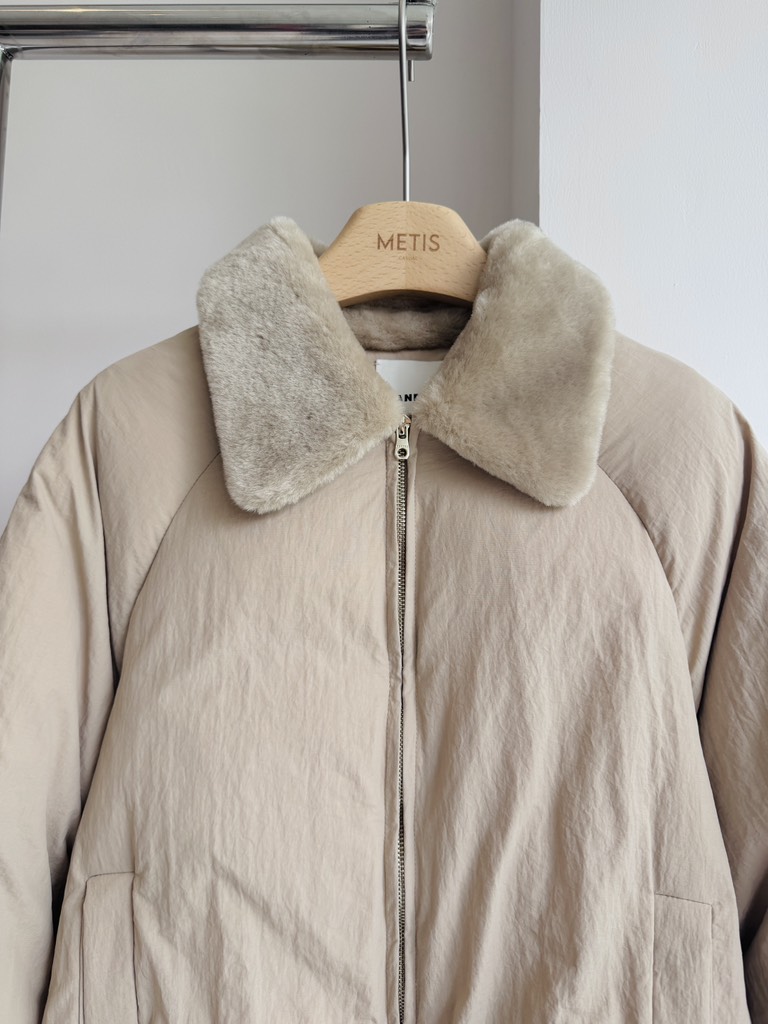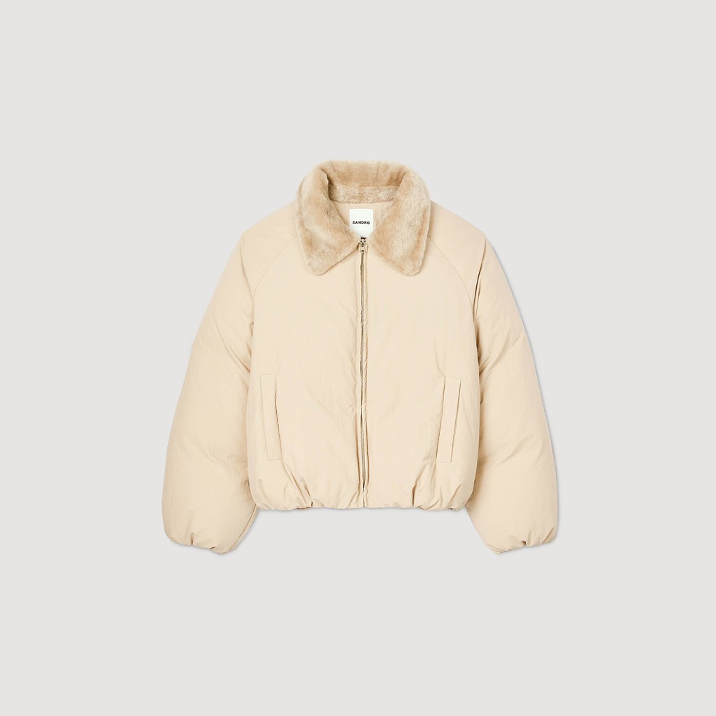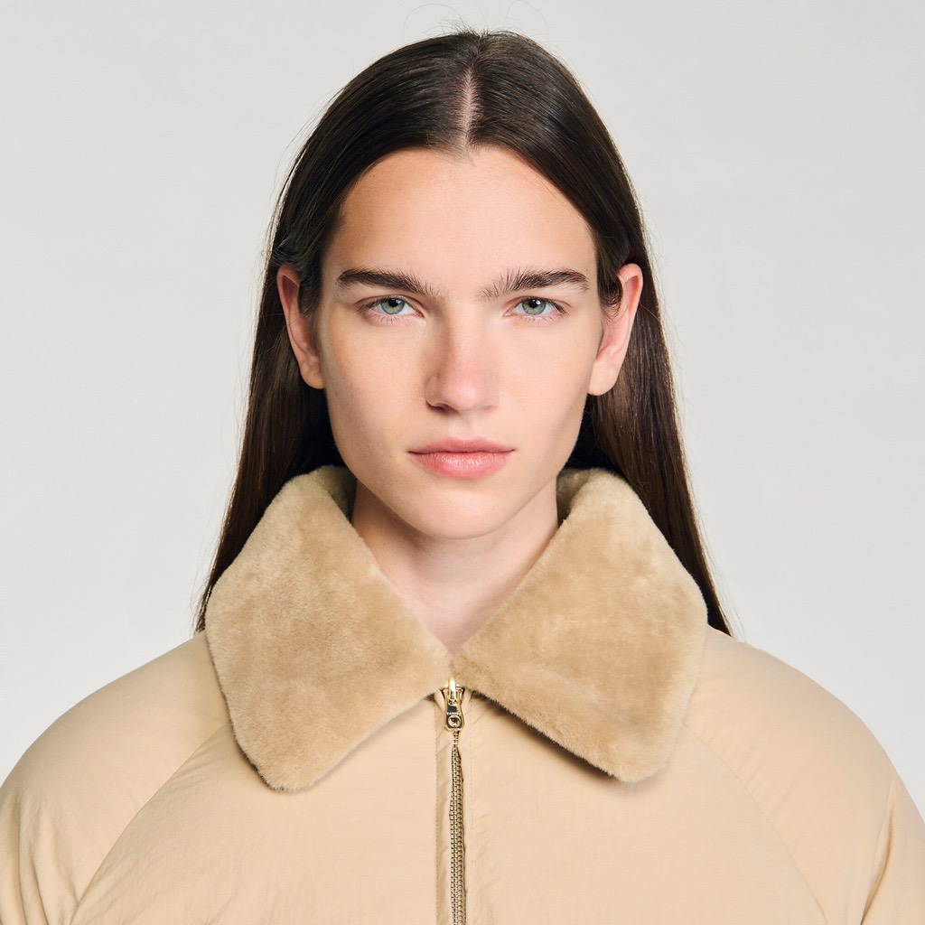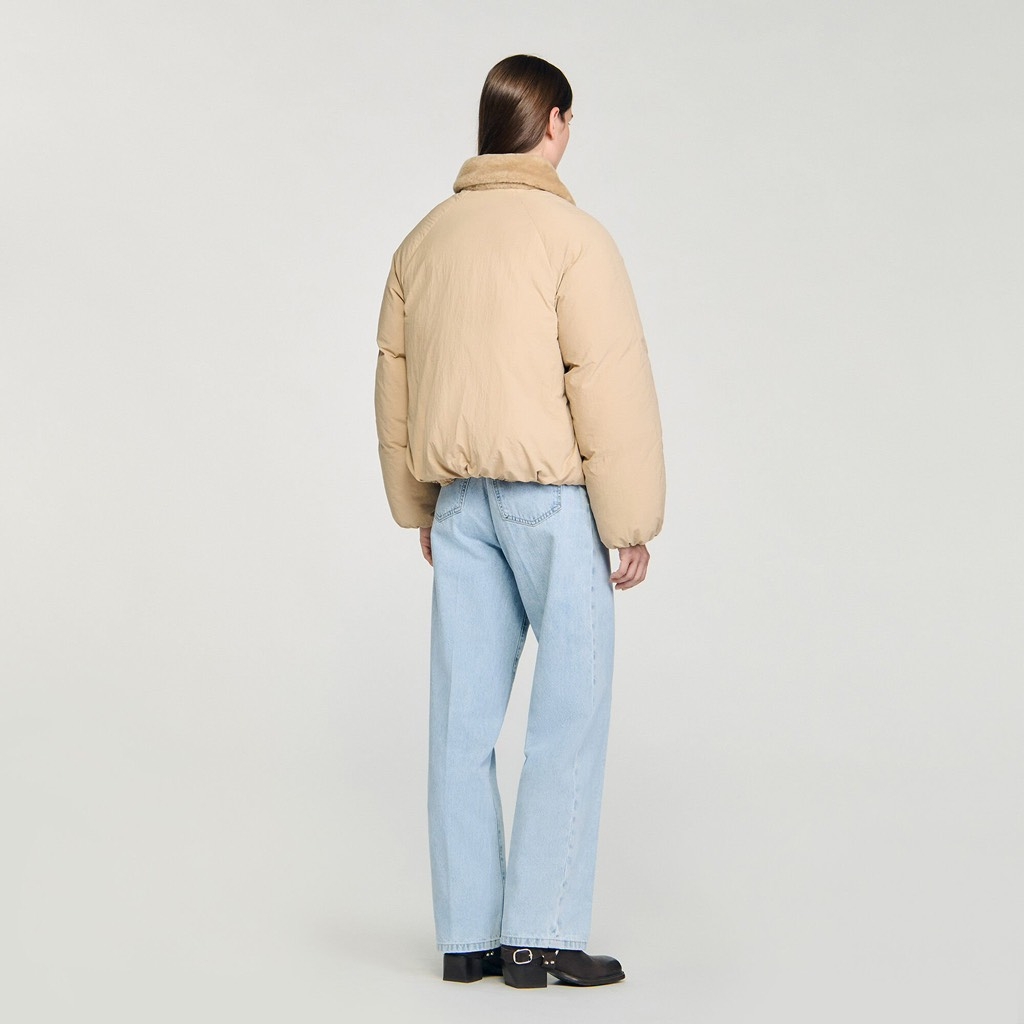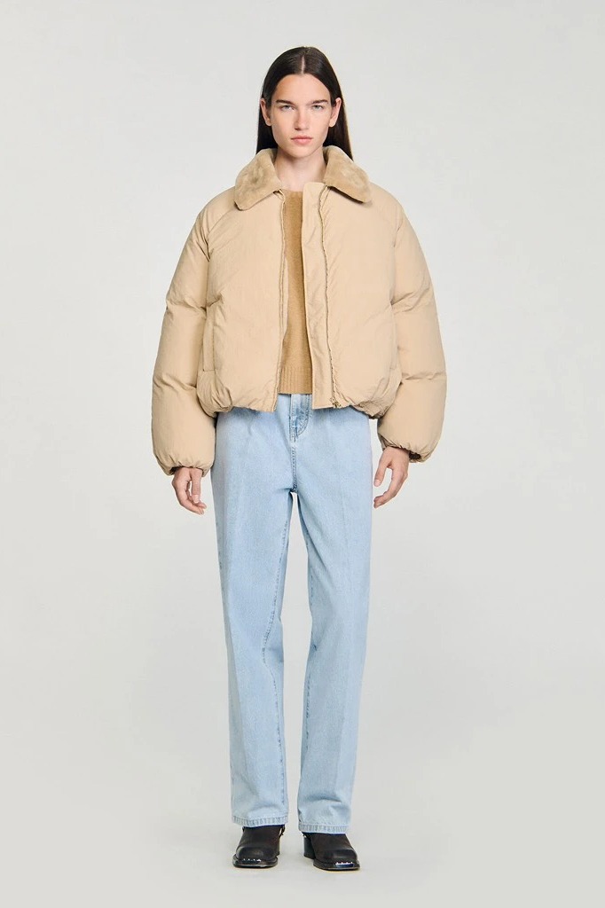 Áo khoác SANDRO nâu cổ lông siêu nhẹ