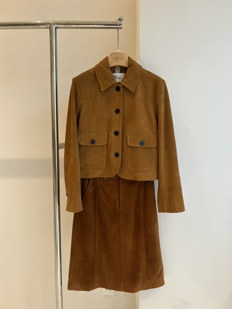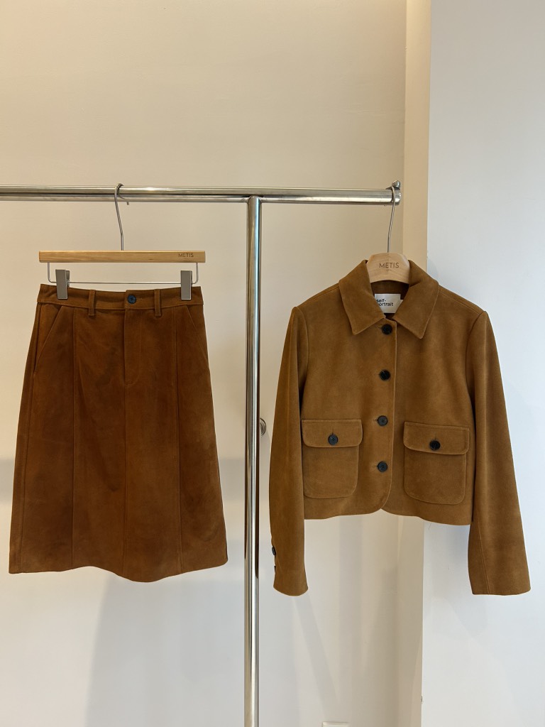 Áo khoác MIUMIU ghi viền tay nâu chun gấu (có set)