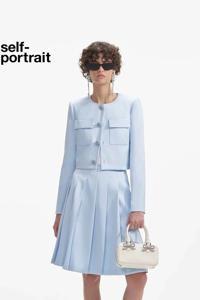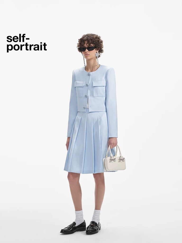Áo khoác SELF PORTRAIT lụa xanh (có set)