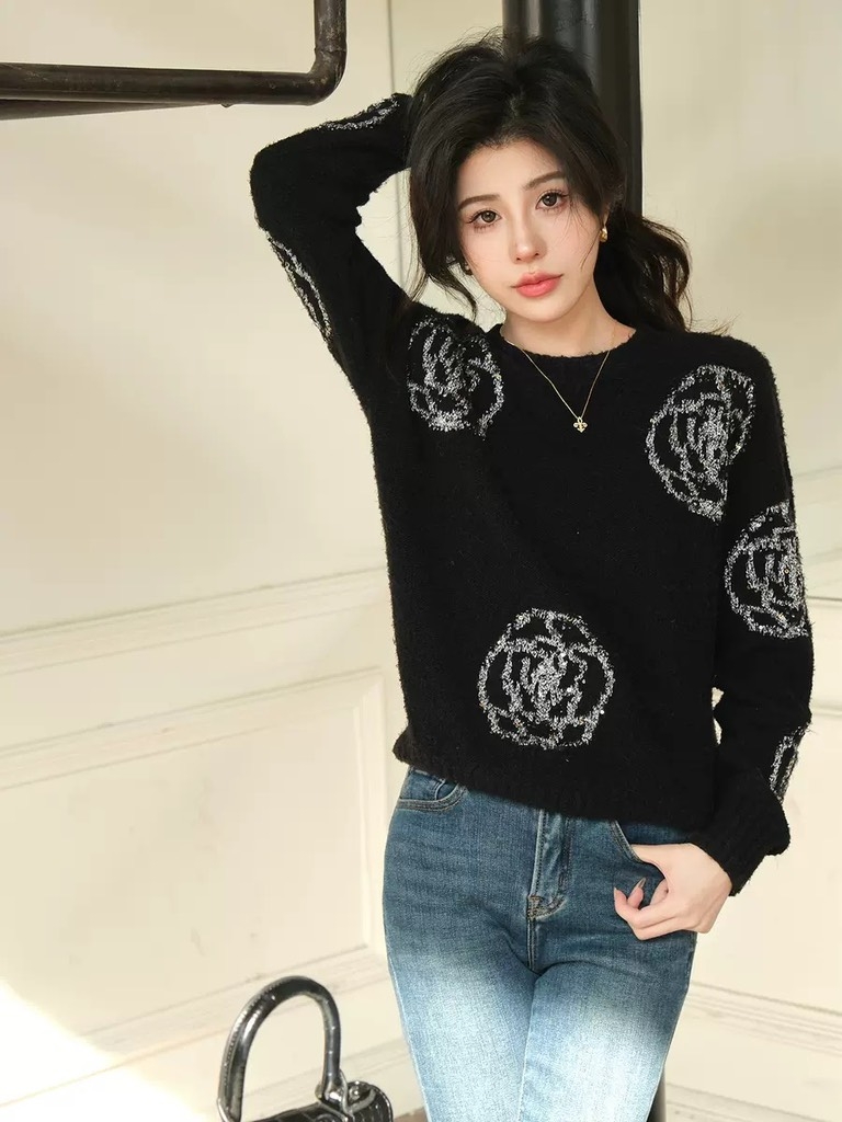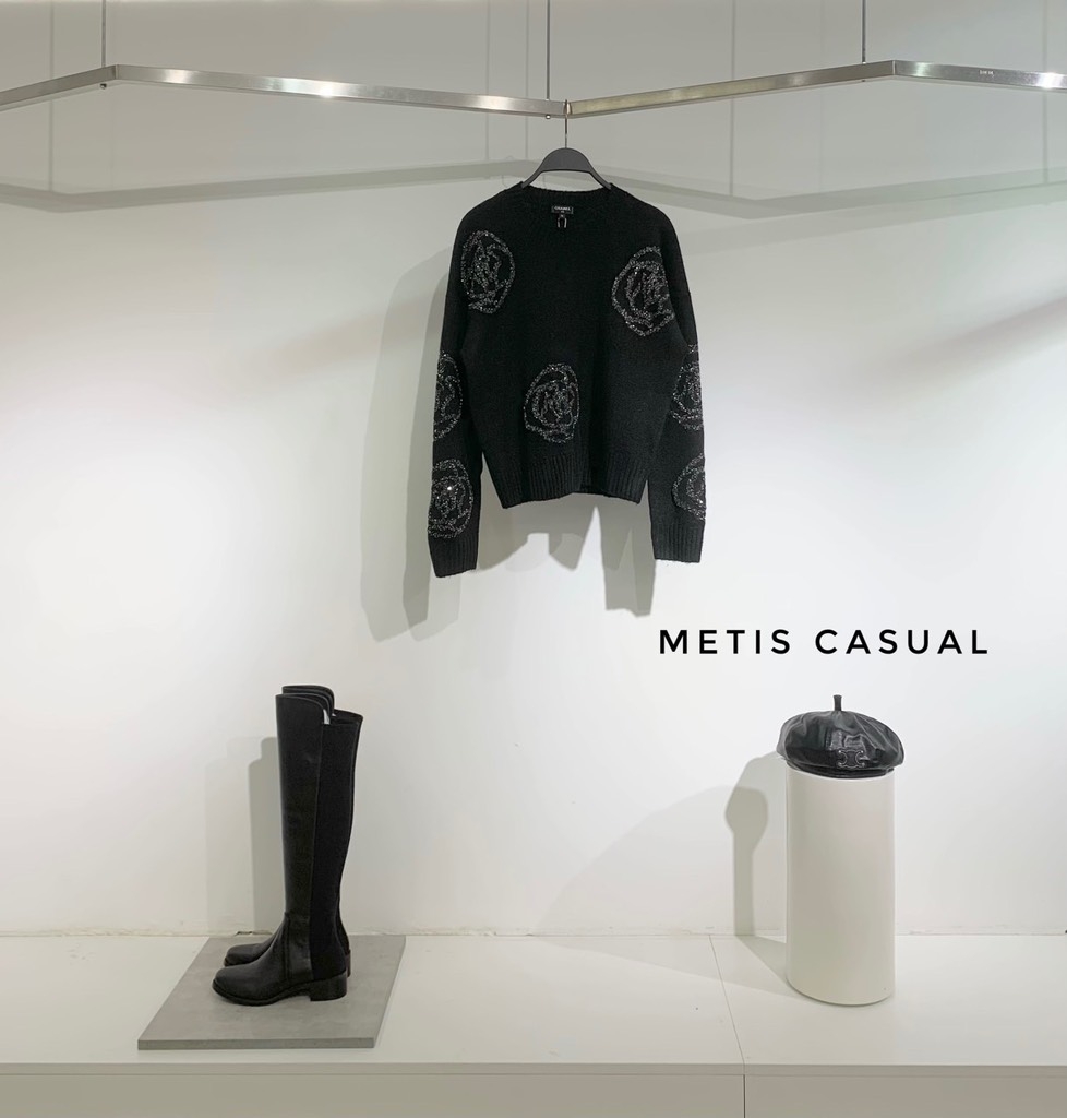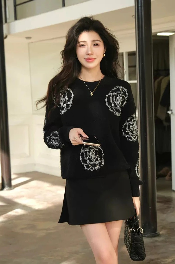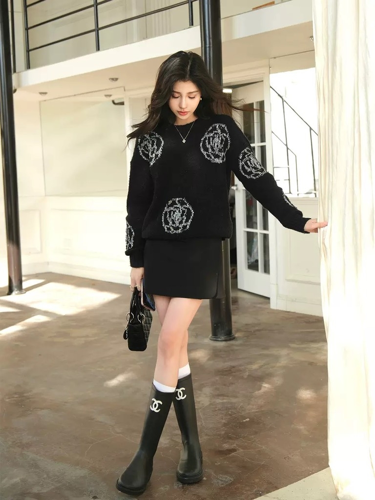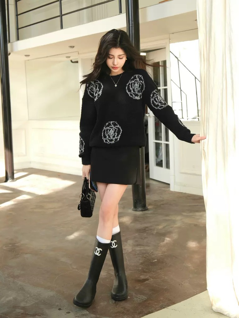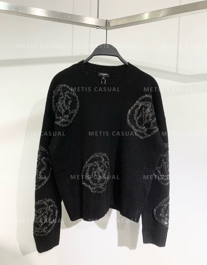 Áo len đen Chanel hoa