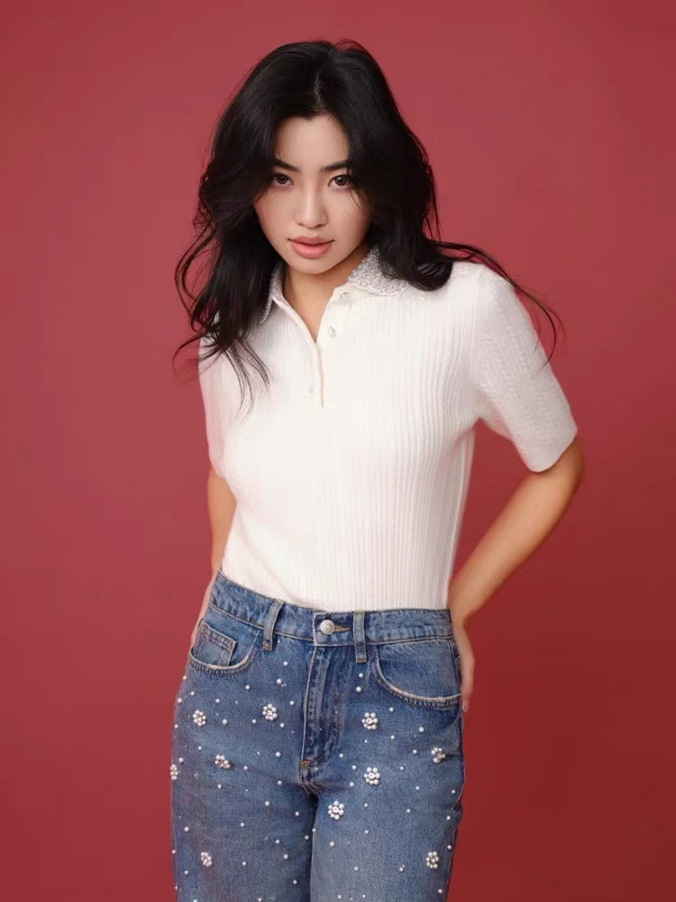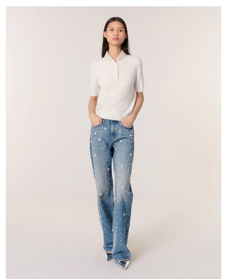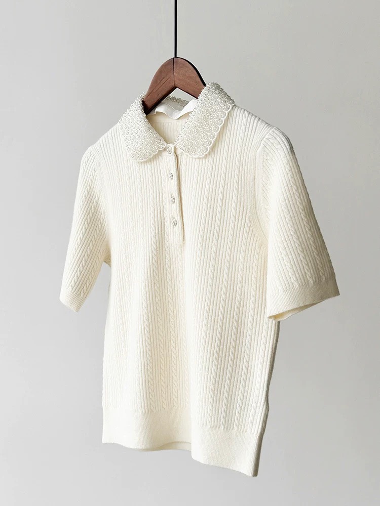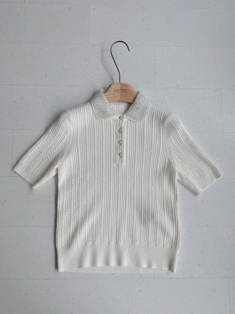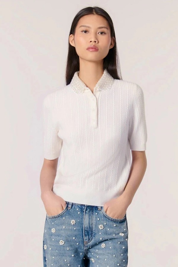 Áo len MAJE kem cổ ngọc cộc tay