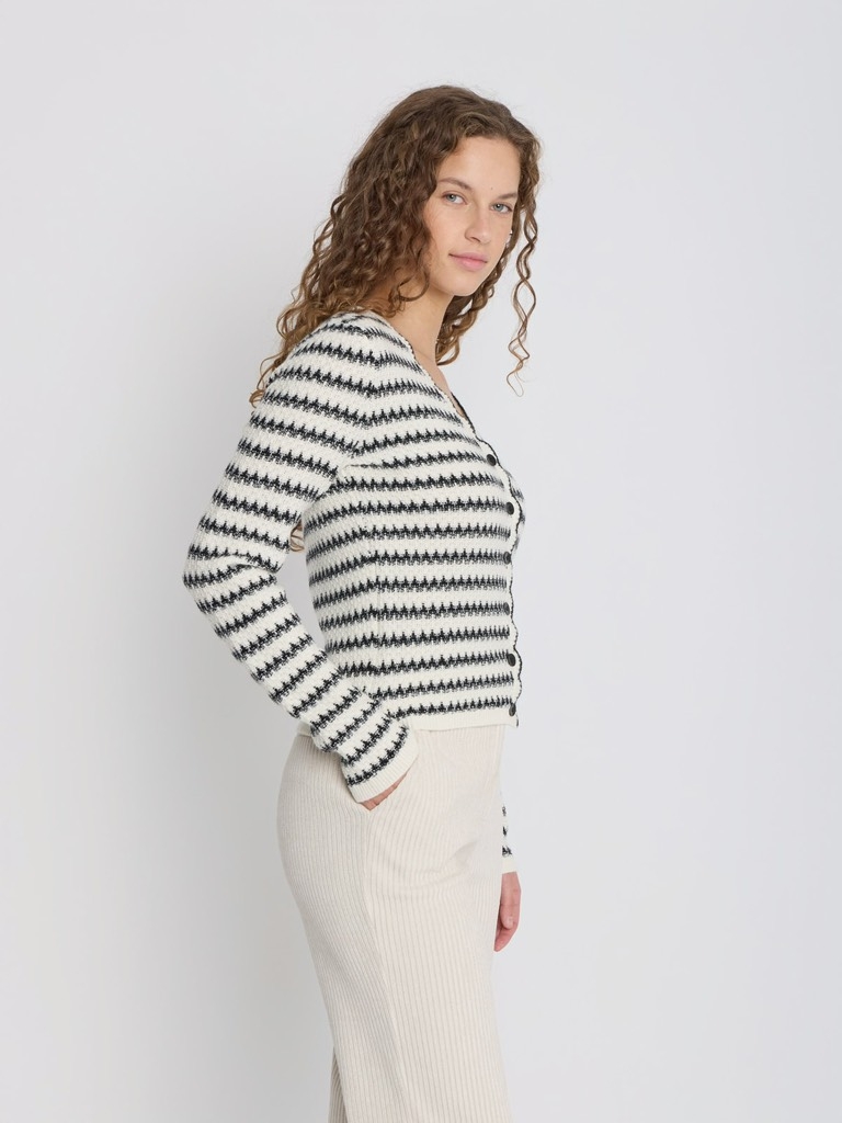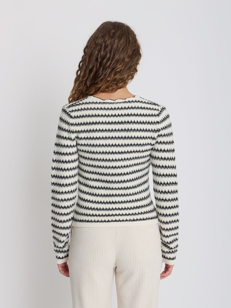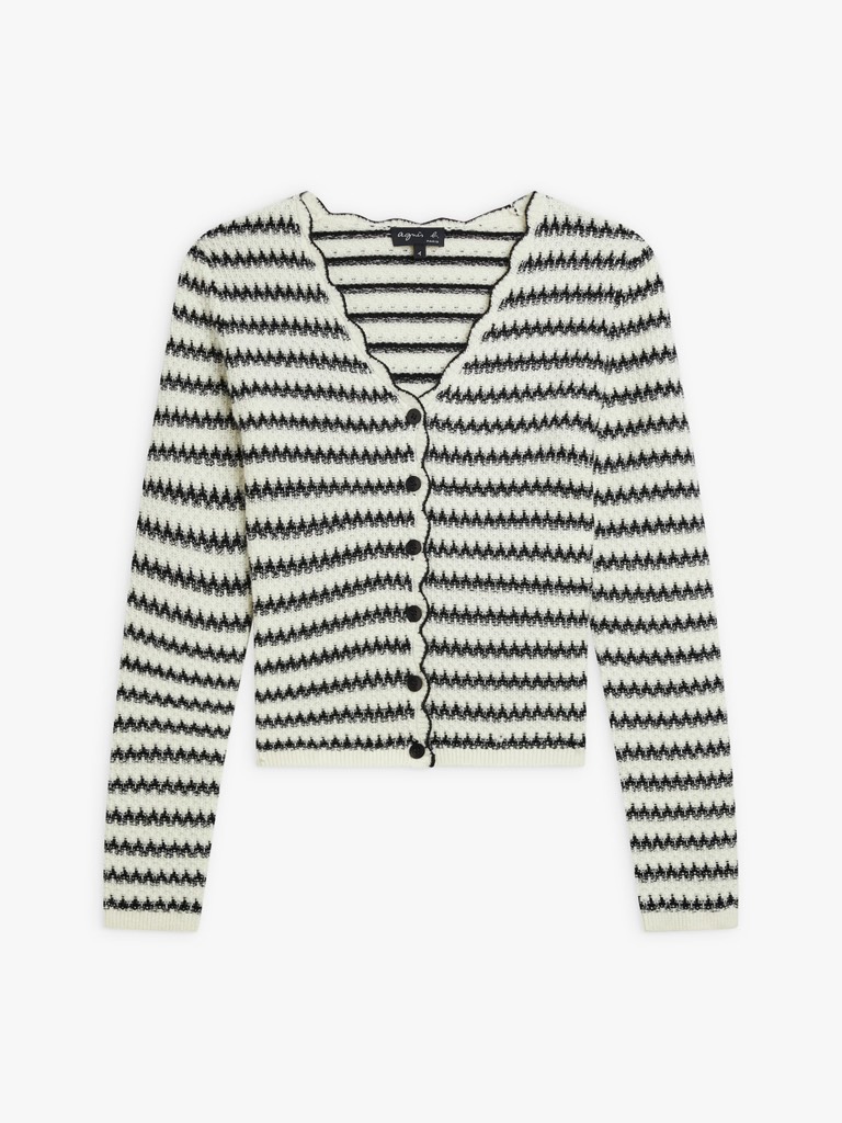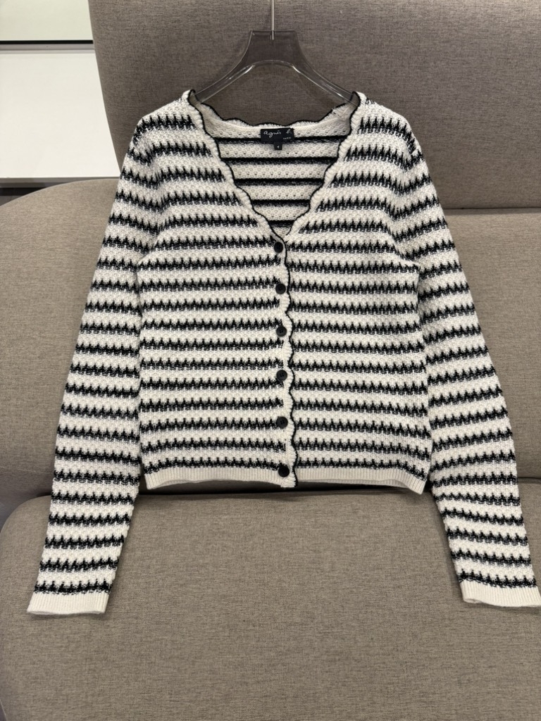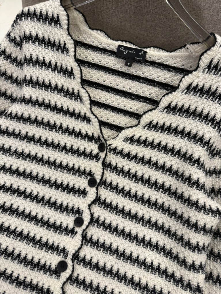 Áo len móc AGNES PARIS viền đen cổ V