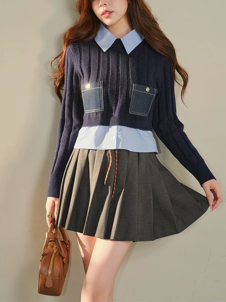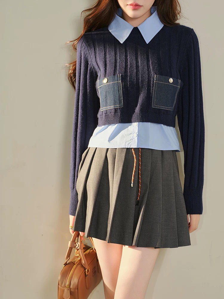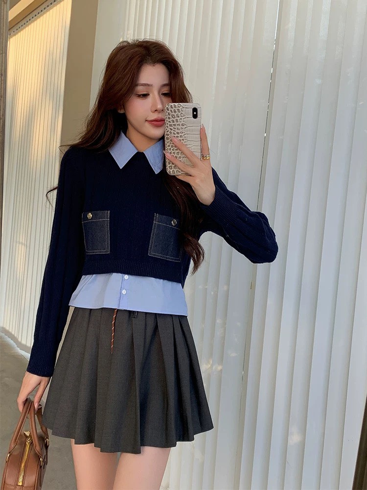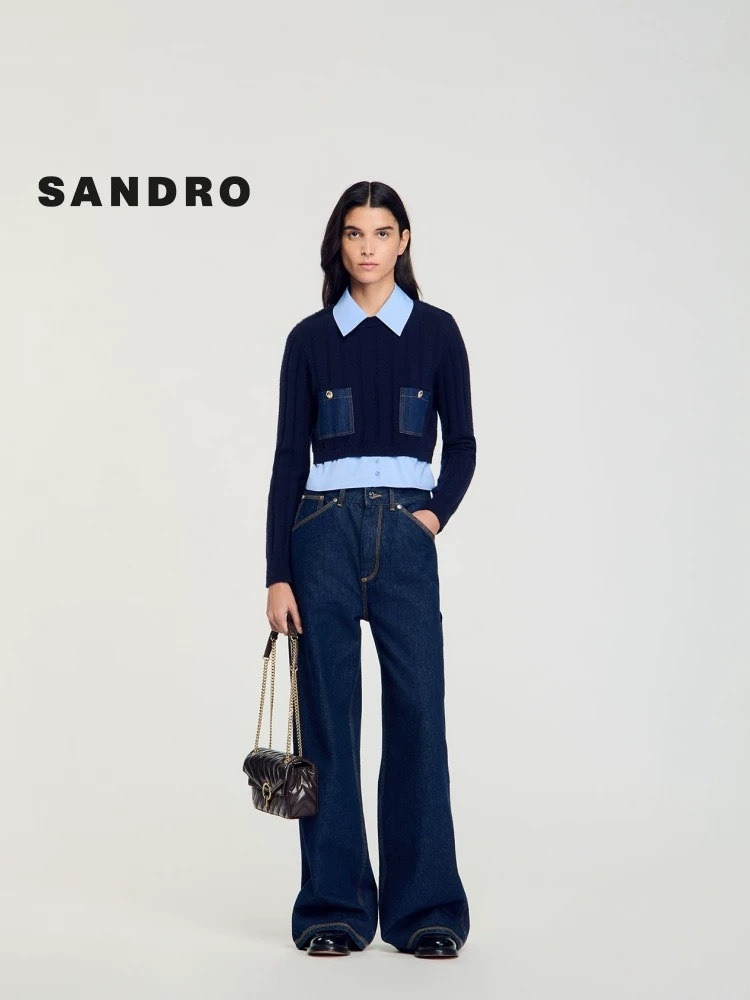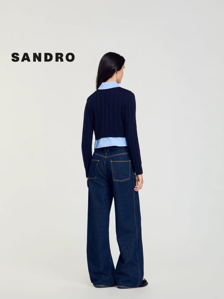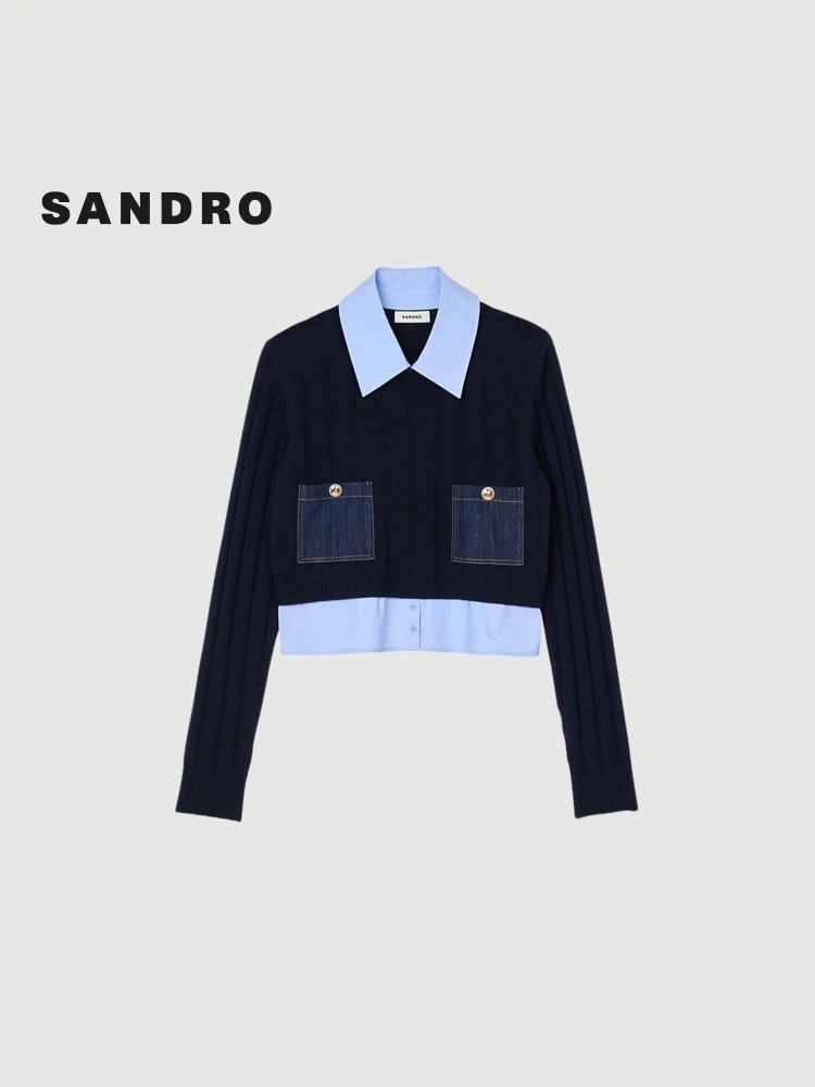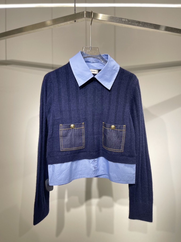 Áo len SANDRO navy cổ sơ mi