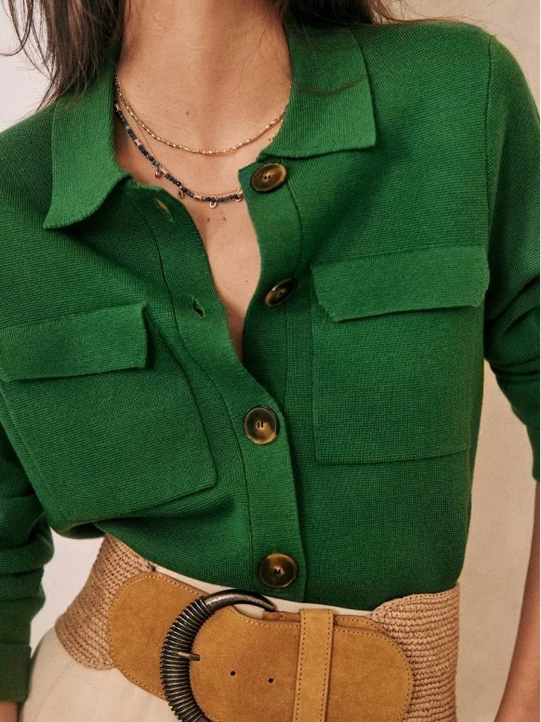 Áo len SE'ZANE cổ bẻ túi ngực