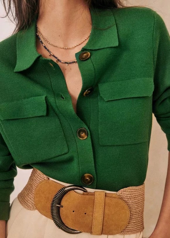 Cardigan SANDRO xanh lá sọc tay