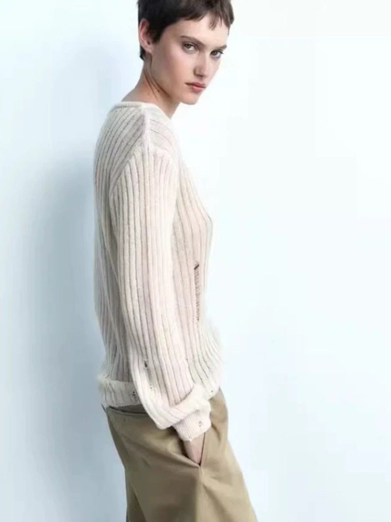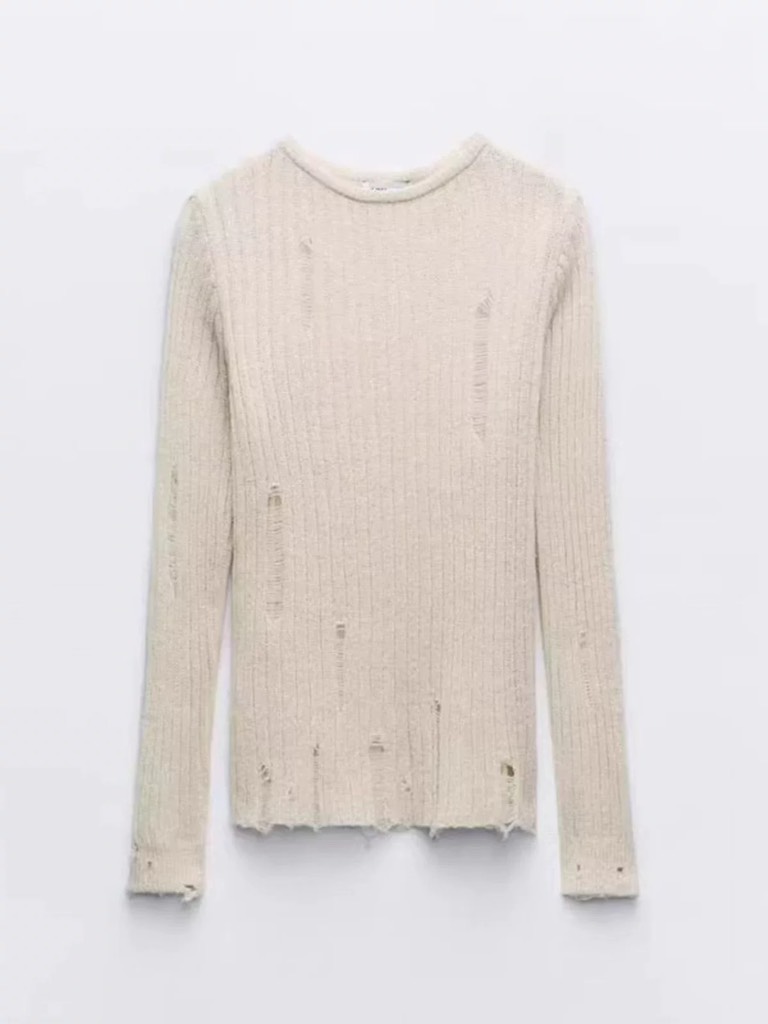 Áo len ZARA len mỏng xước cổ tròn