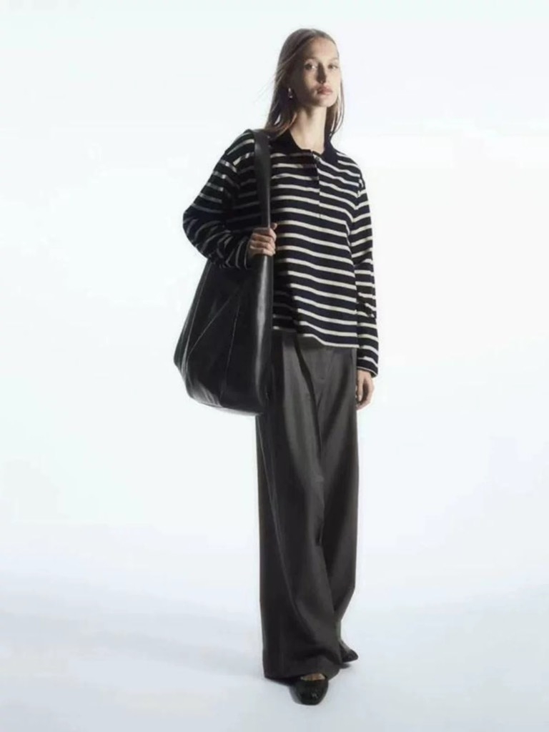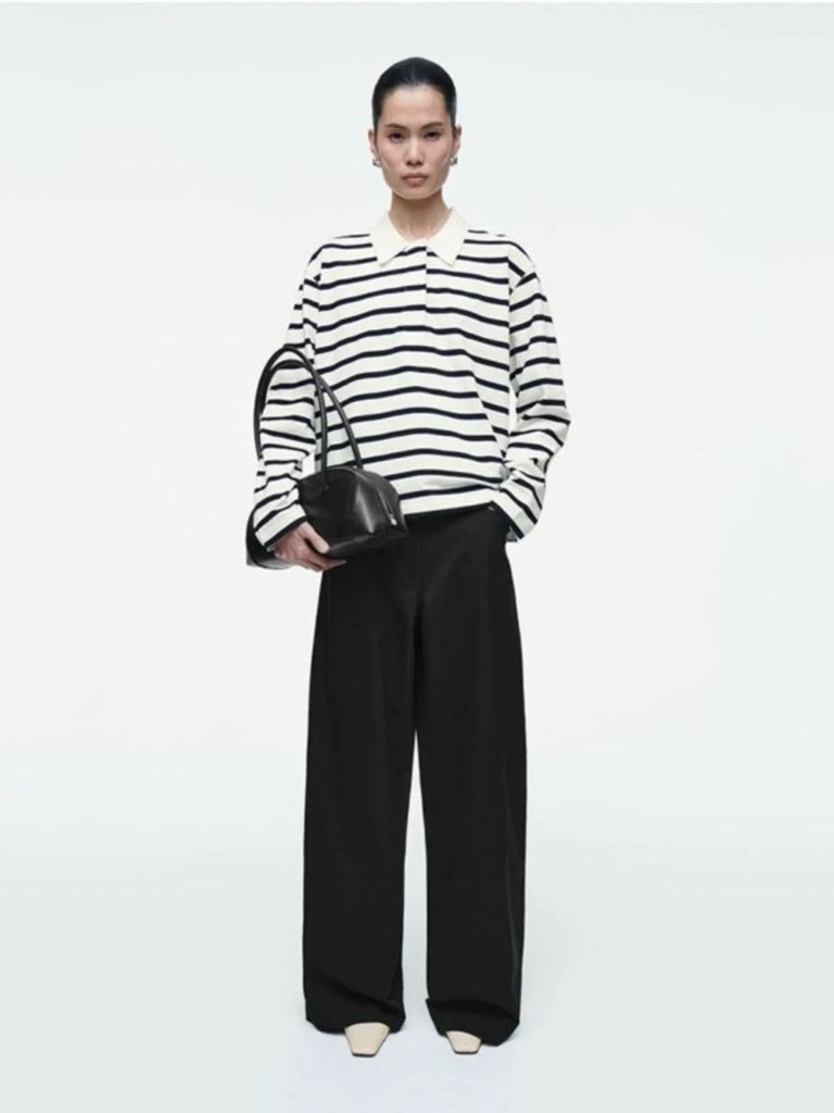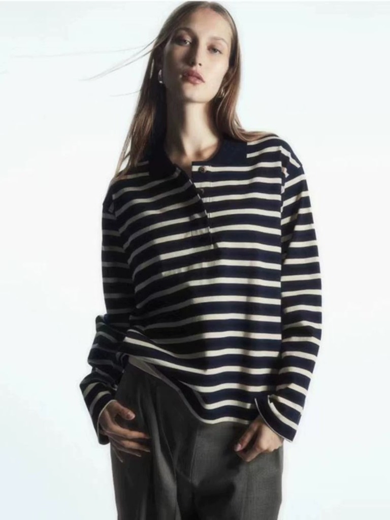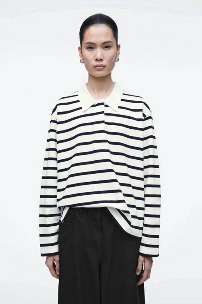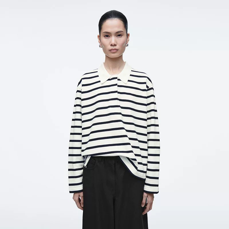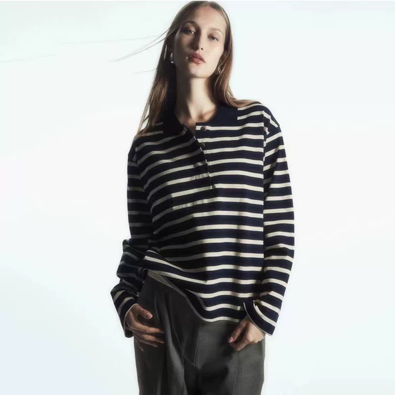 Áo thun COS đen dài tay đuôi tôm nhẹ