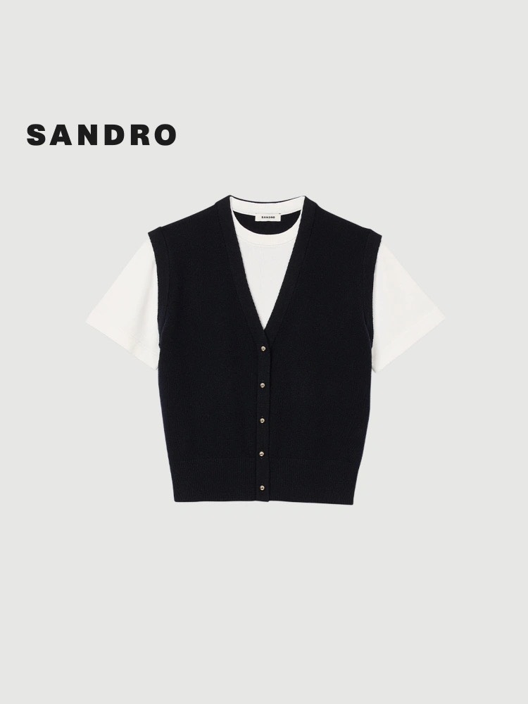 Áo SANDRO cộc tay cải trắng