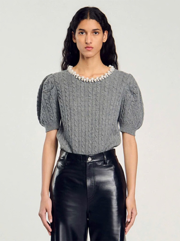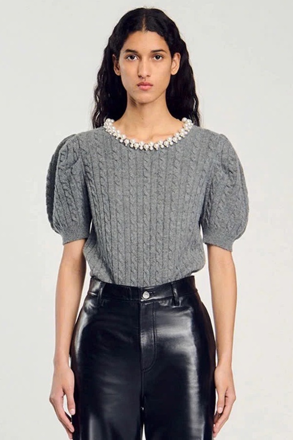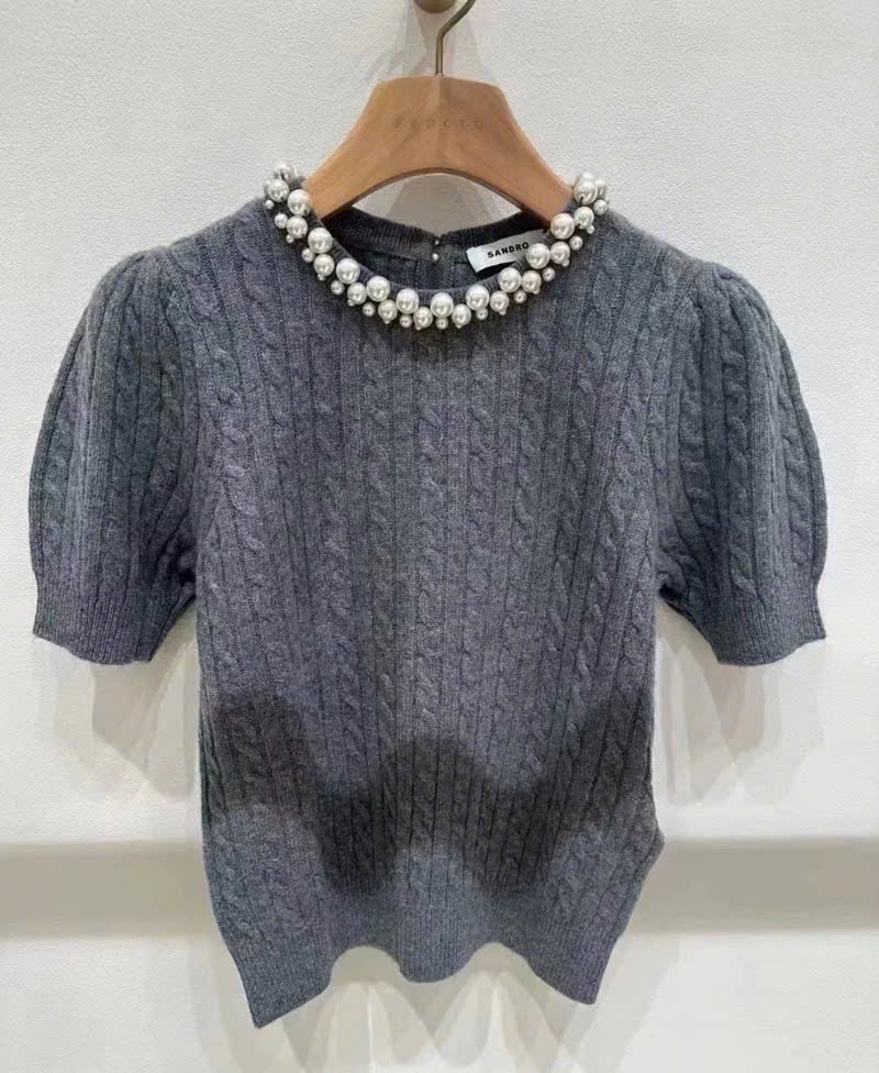 Áo SANDRO ghi cổ ngọc trai