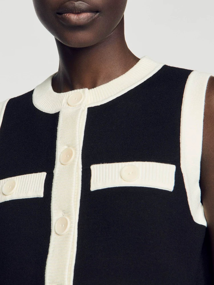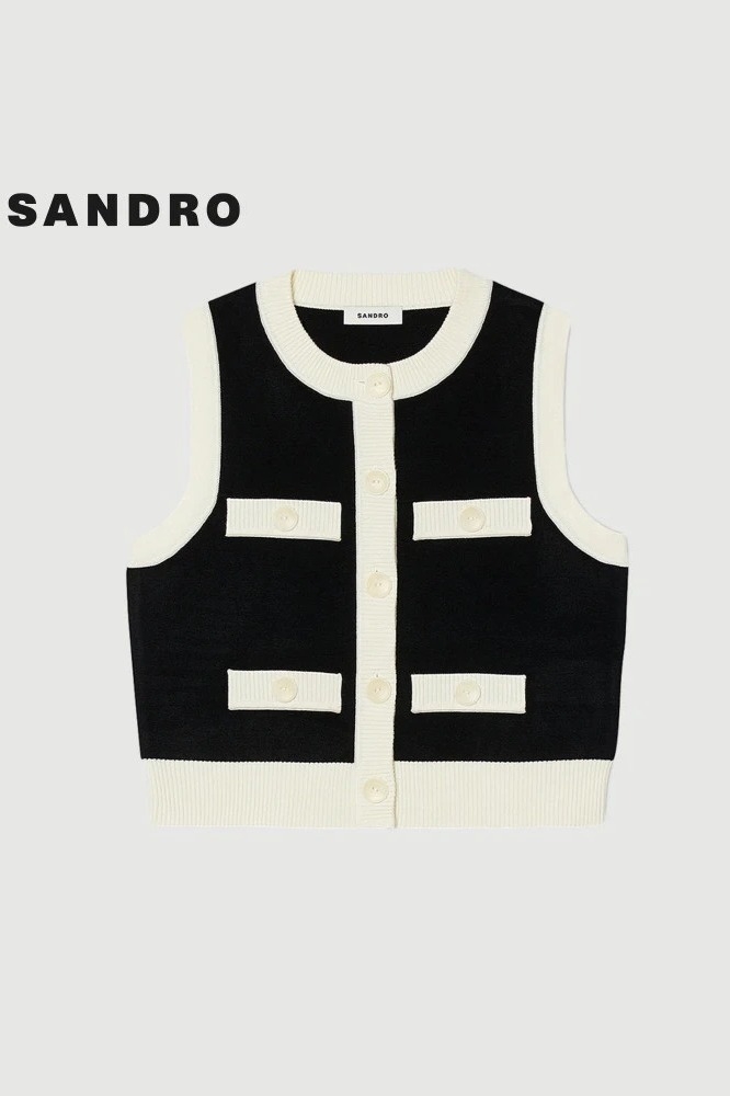Áo SANDRO sát nách đen viền trắng