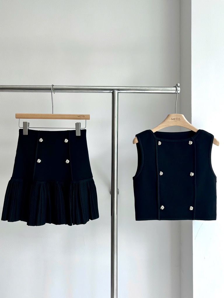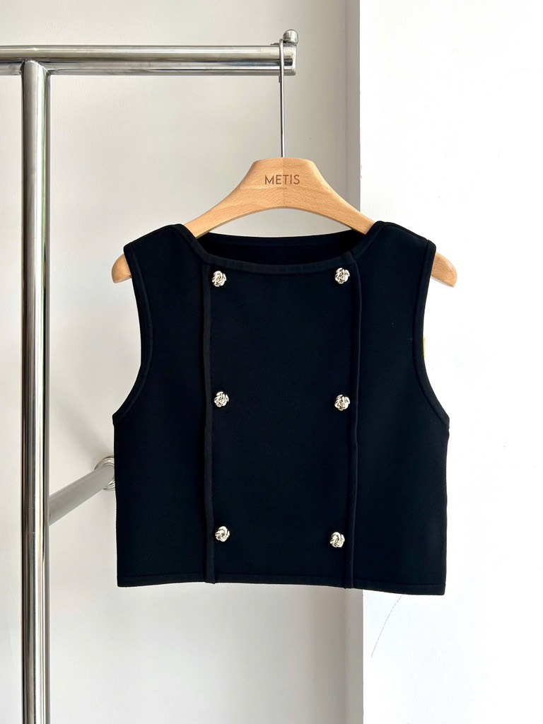 Áo sát nách SANDRO đen khuy vàng (có set)