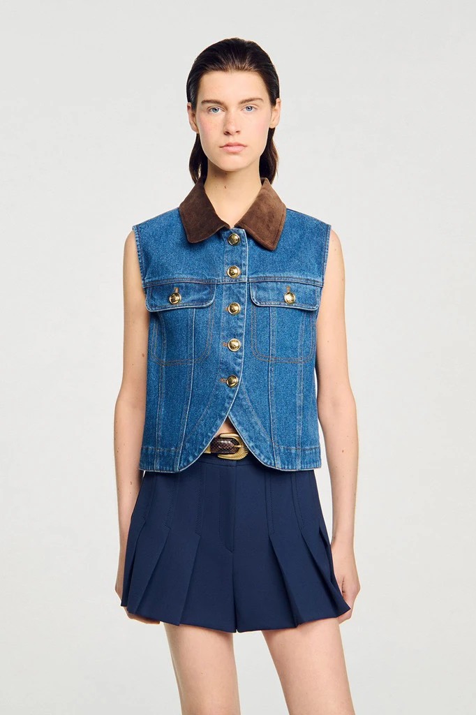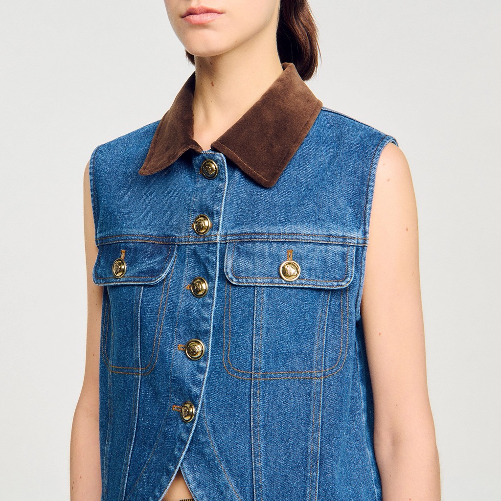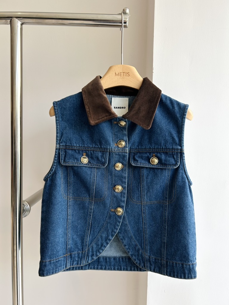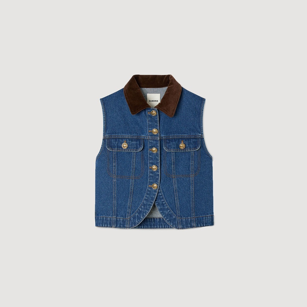 Áo sát nách SANDRO jean cổ nhung