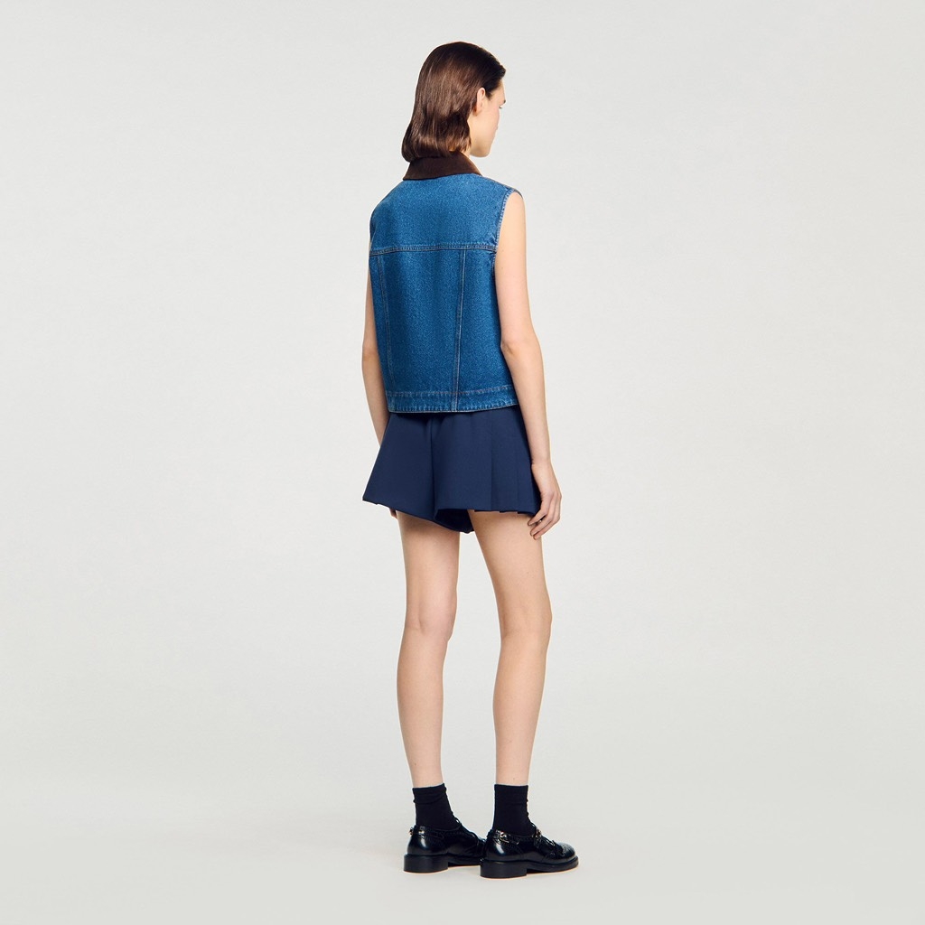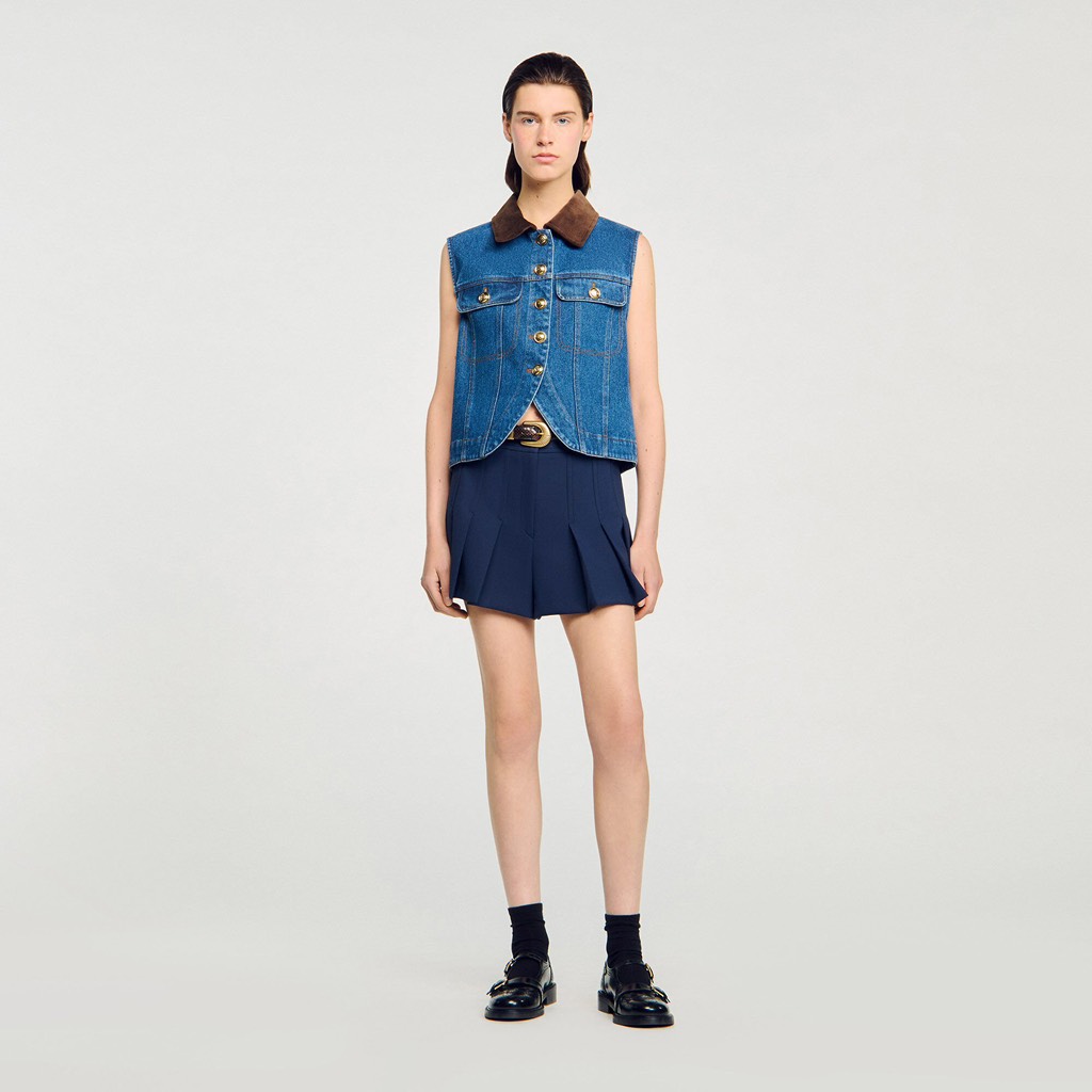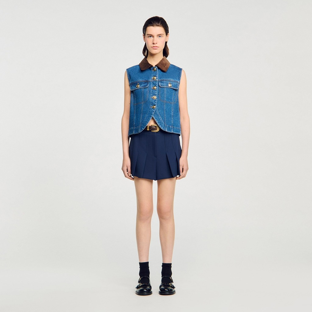 Áo sát nách SANDRO jean cổ nhung