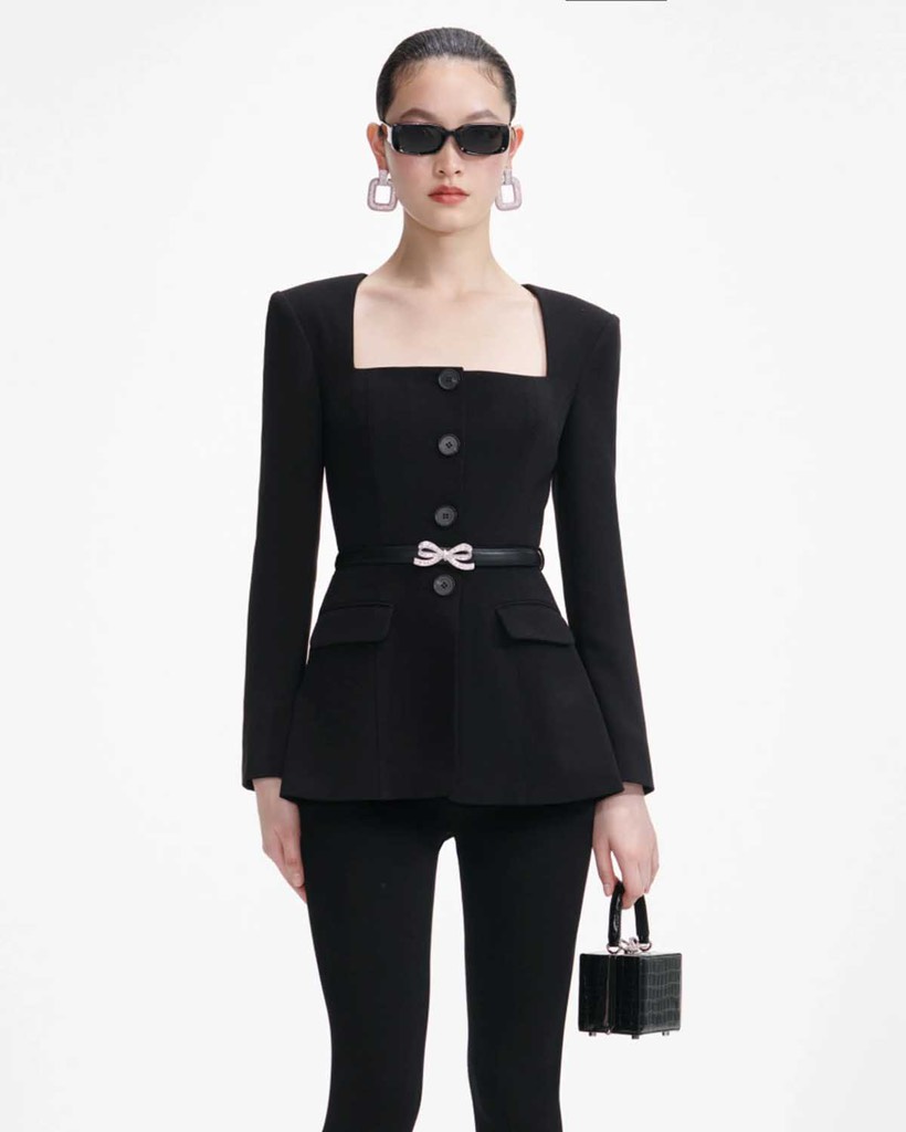Áo thun COS đen dài tay đuôi tôm nhẹ