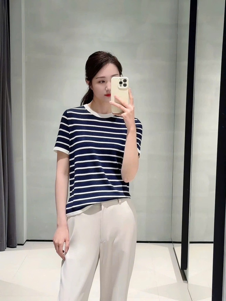 Áo len Brunello Cucinelli kẻ trắng ngang