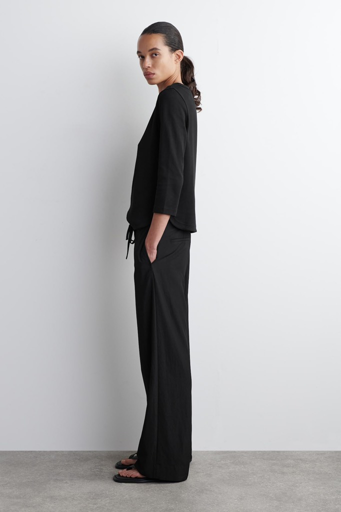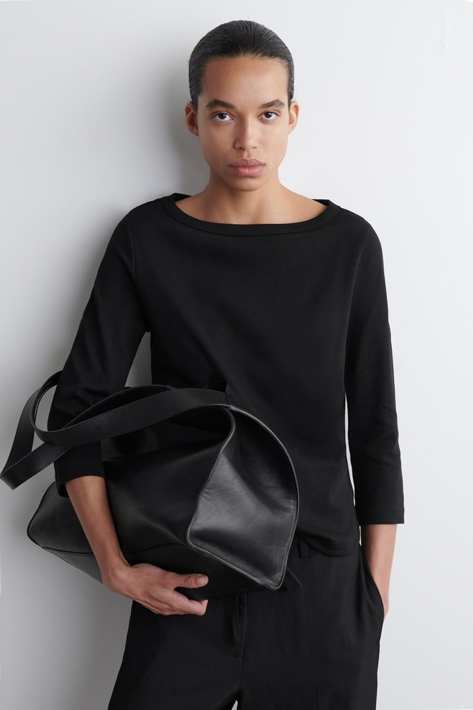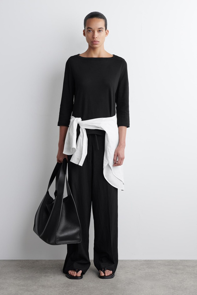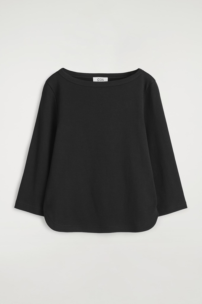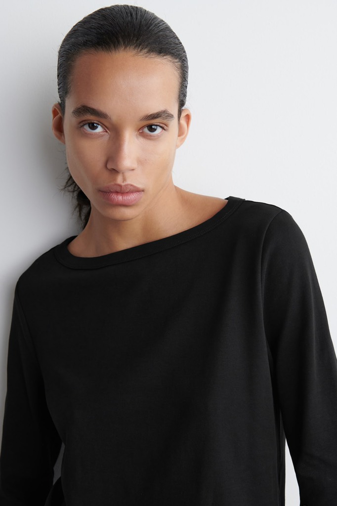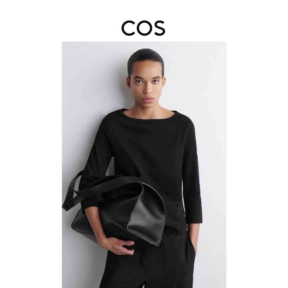 Áo thun COS đen dài tay đuôi tôm nhẹ