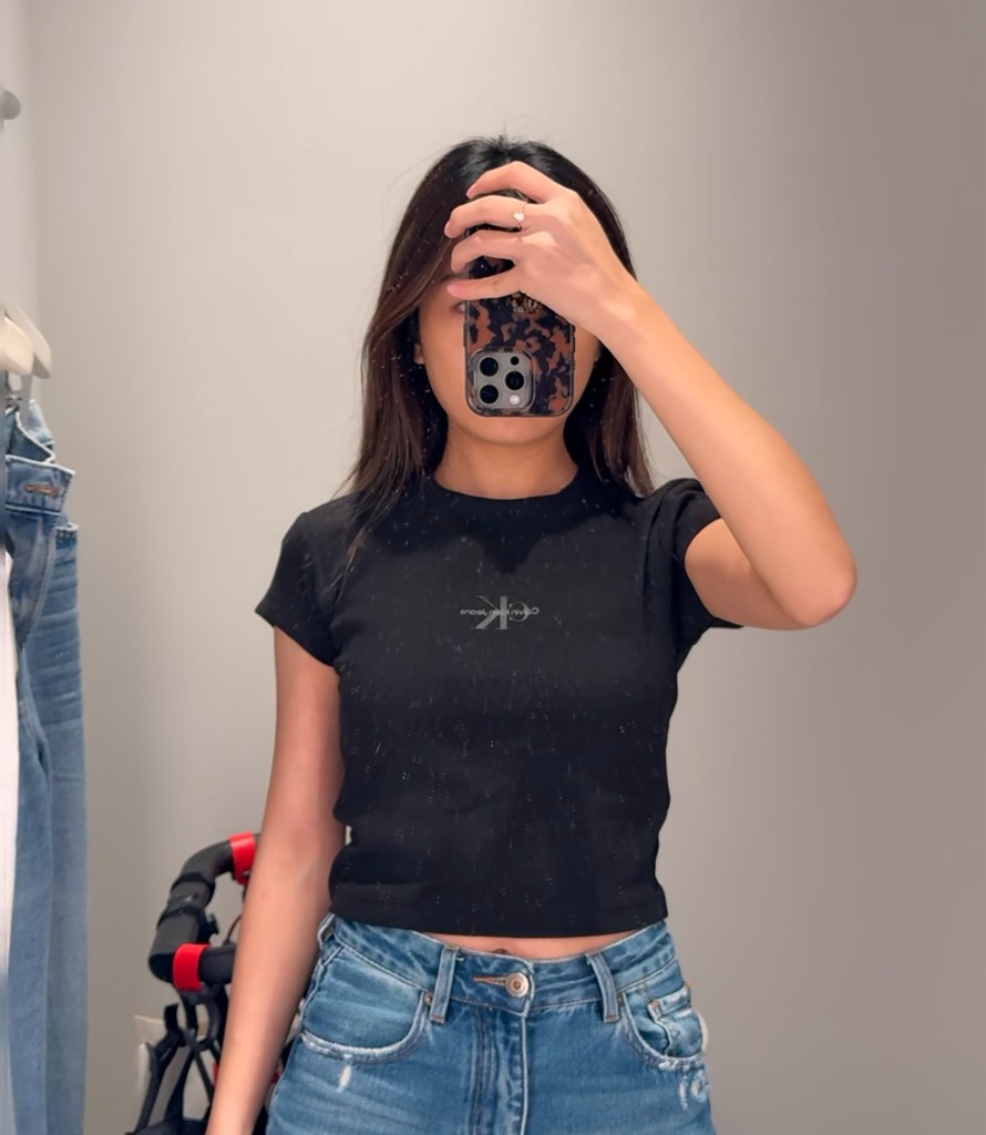 Áo thun COS đen dài tay đuôi tôm nhẹ