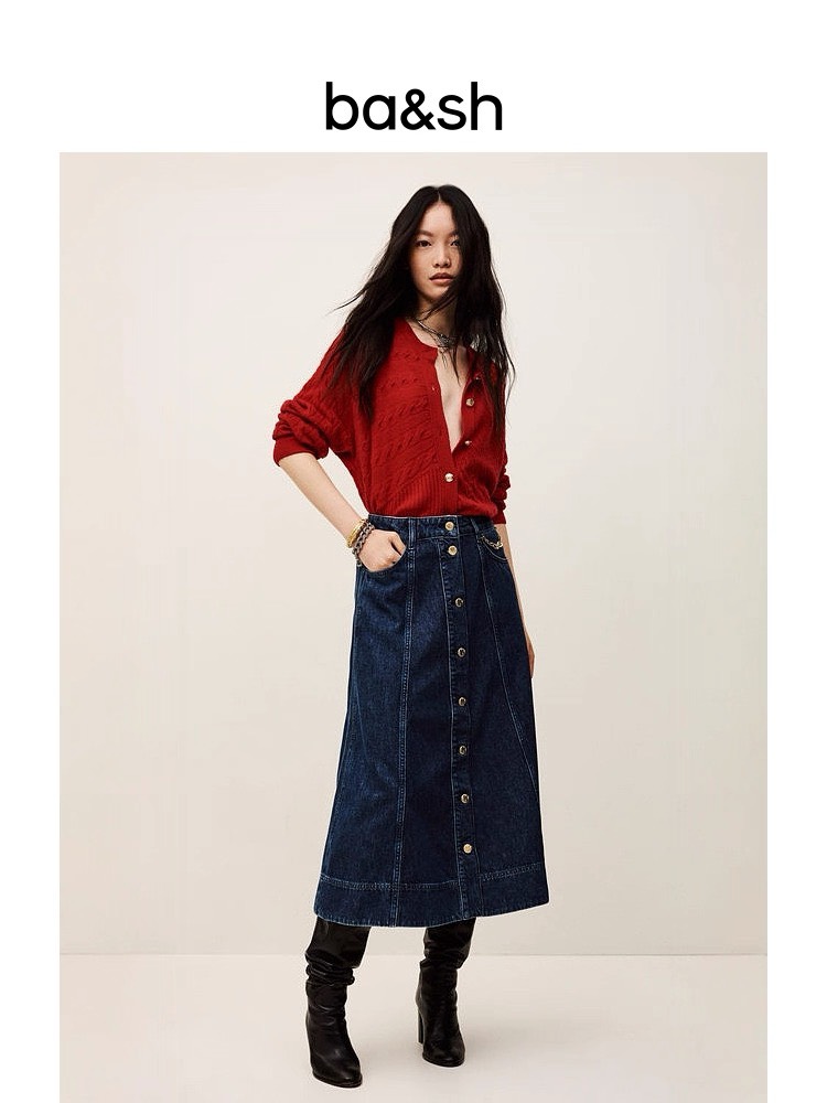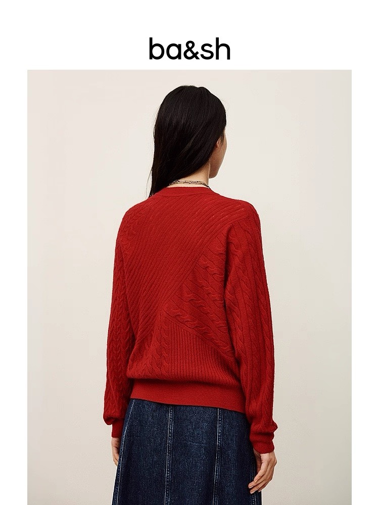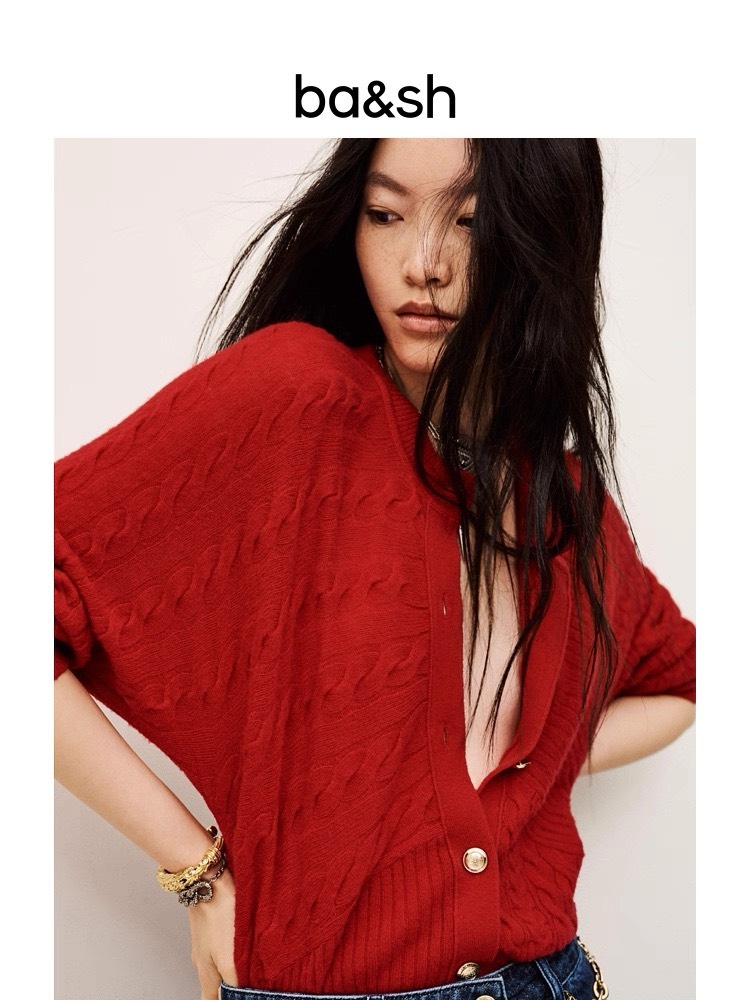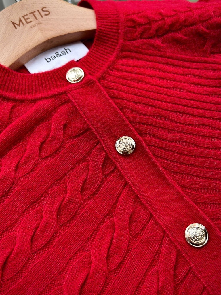 Cardigan BA&SH đỏ len mỏng khuy vàng