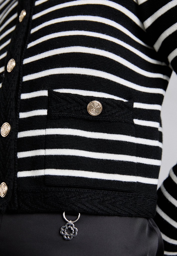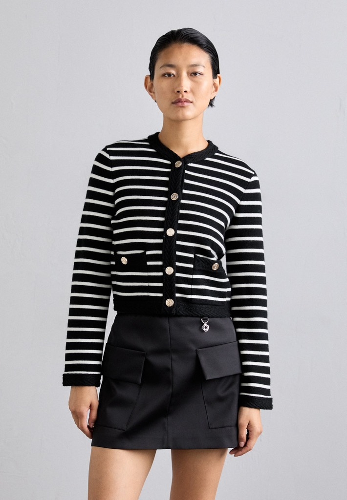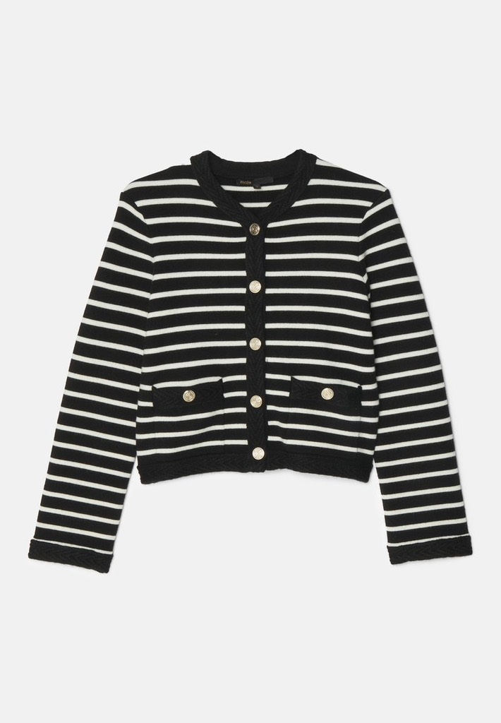Cardigan MAJE đen kẻ trắng