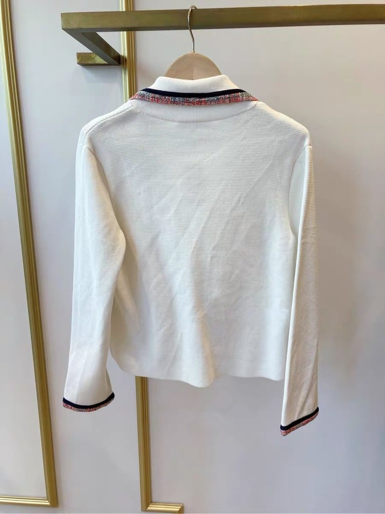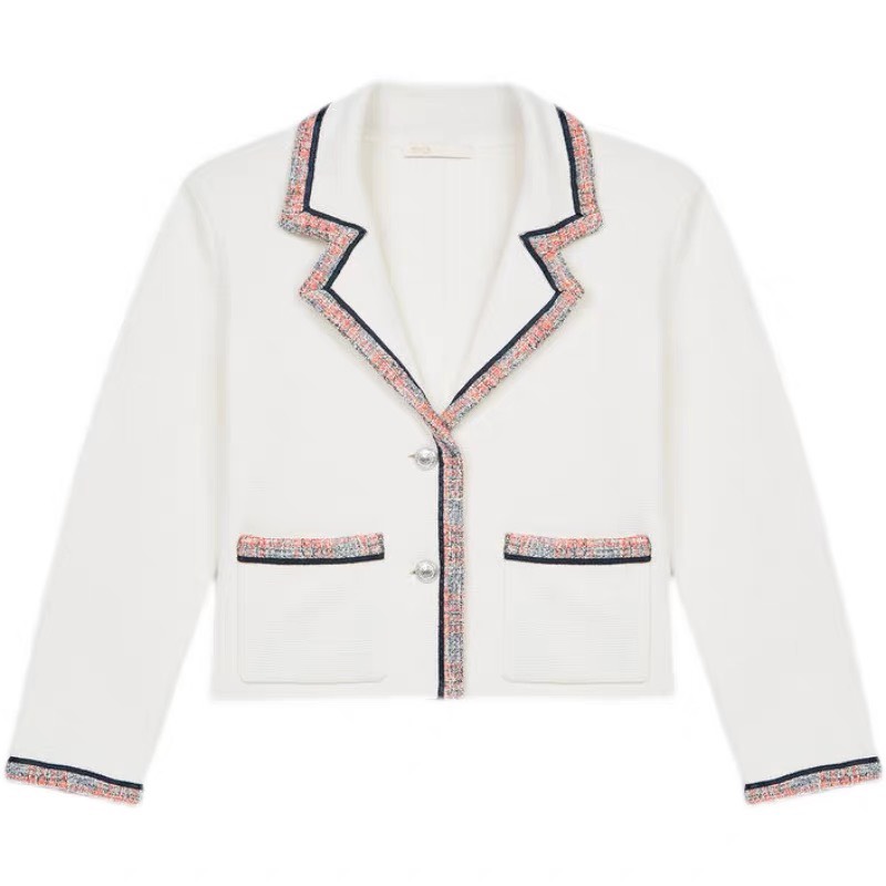 Cardigan Maje trắng cổ bẻ viền dạ