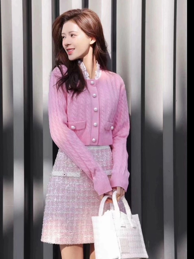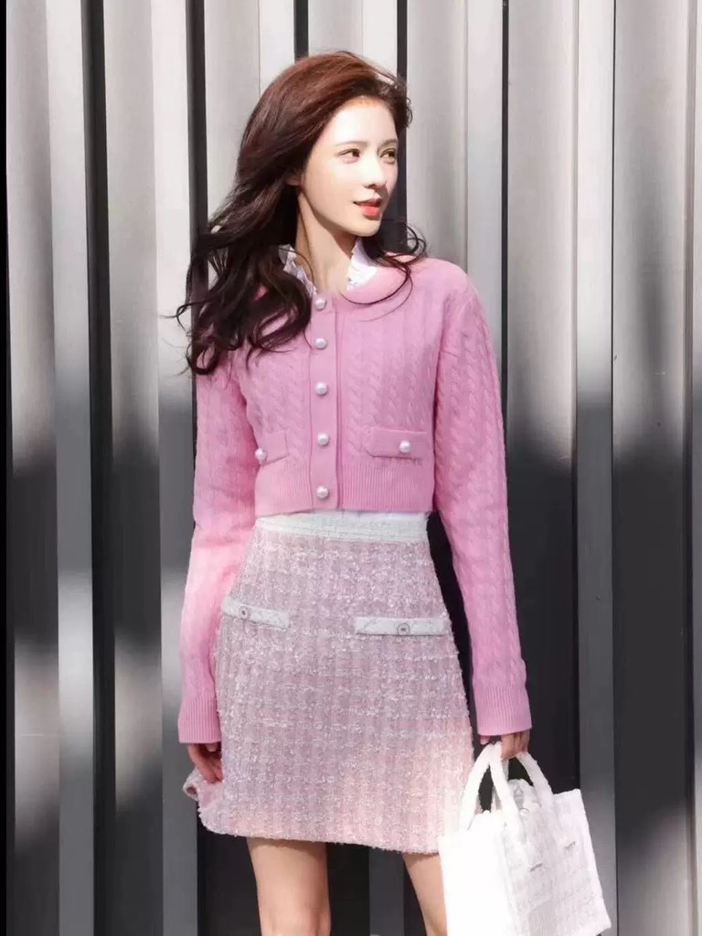 Aó khoác len Chanel viền hồng đen
