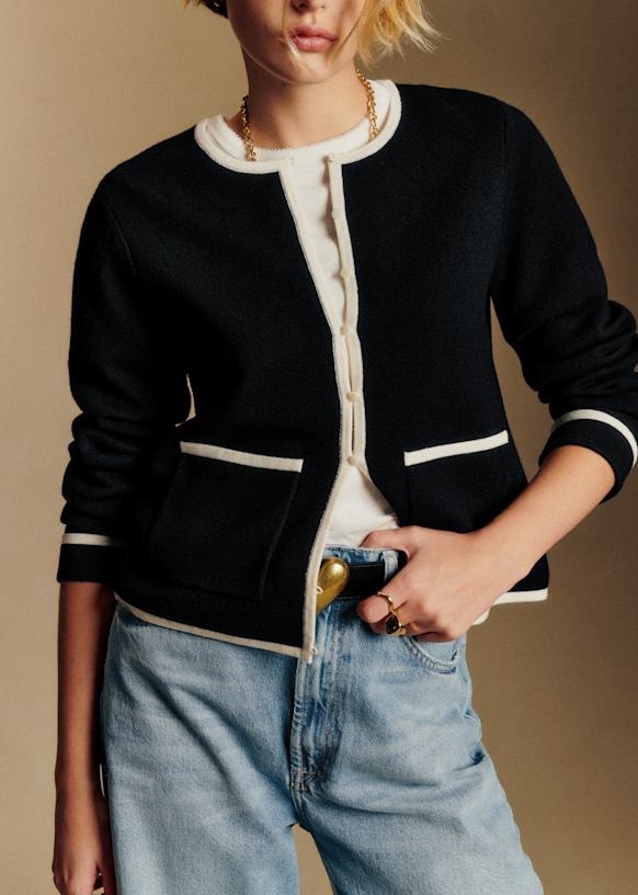 Cardigan KARL LAGERFELD 2 màu viền đen