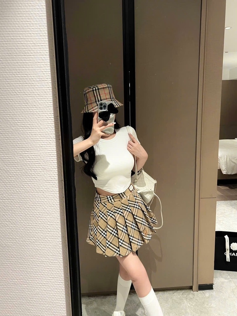Chân váy BBR kẻ nâu sáng