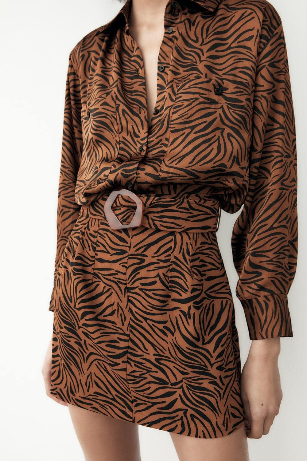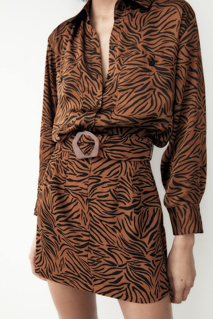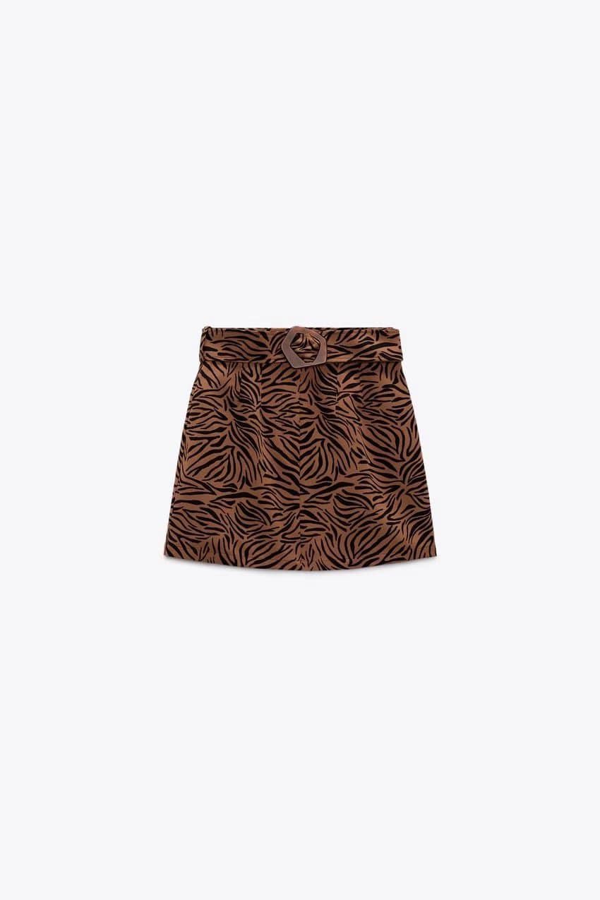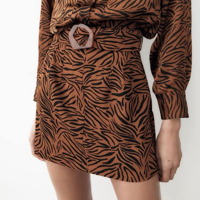 Chân váy hoạ tiết báo kèm belt