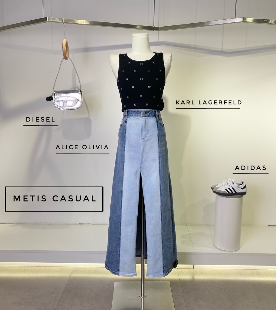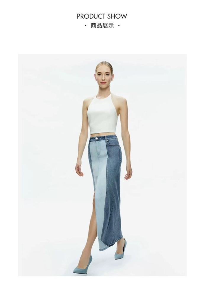 Chân váy jeans Alice&Olivia phối màu