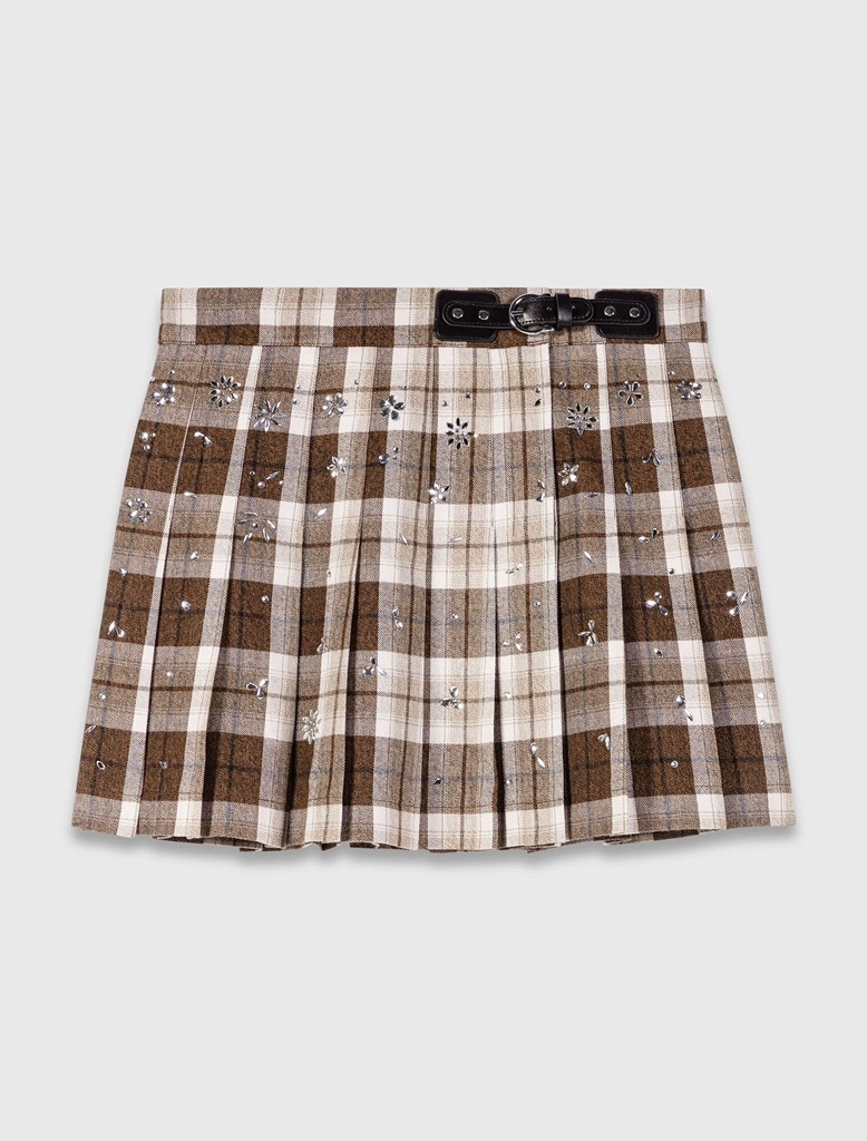 Chân váy MAJE kẻ nâu đính đá ( có set )