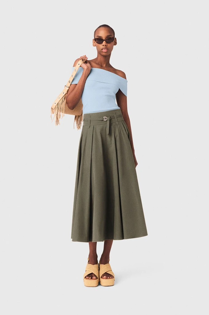 Chân váy MAJE rêu xếp ly eo dáng dài