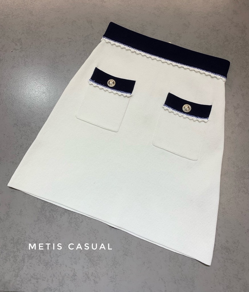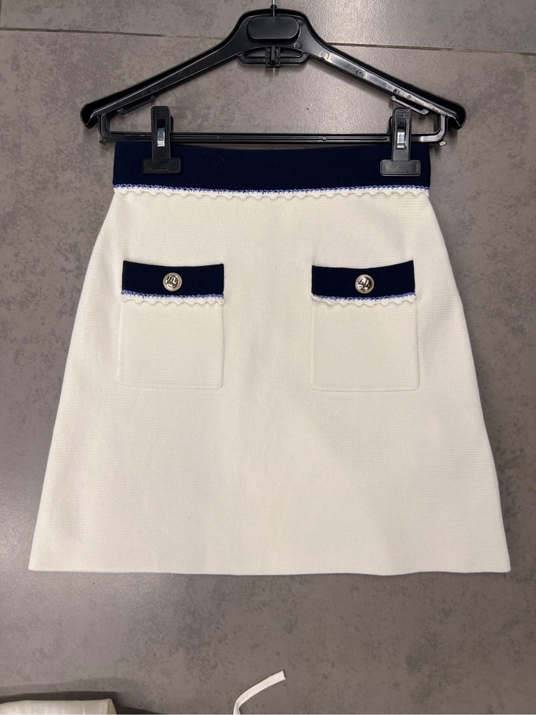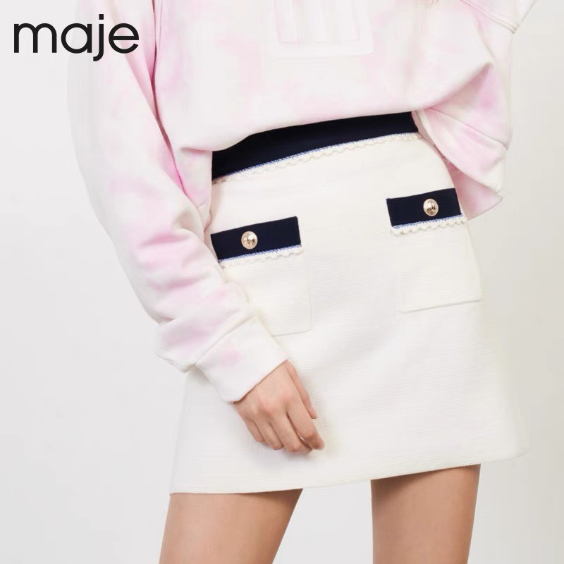 Chân váy Maje trắng viền navy