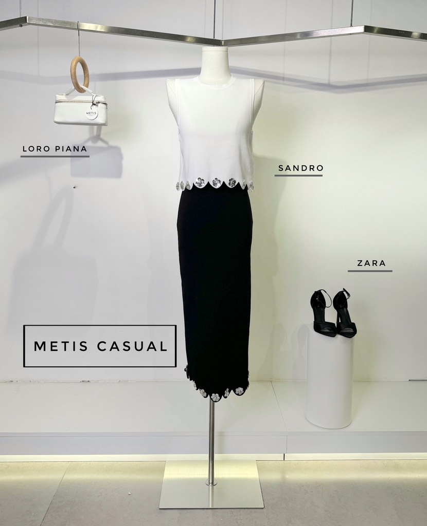 Set áo 2 dây+ chân váy MAJE chun thân kẻ (có set )